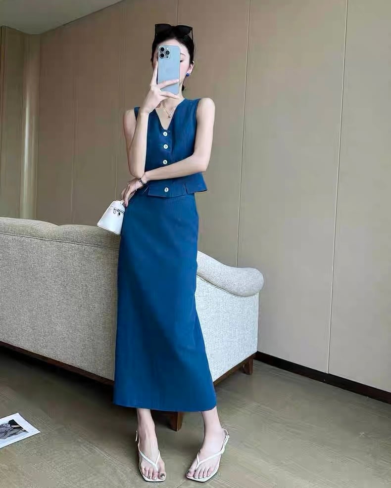 【セットアップ】Vネックベスト+スカート