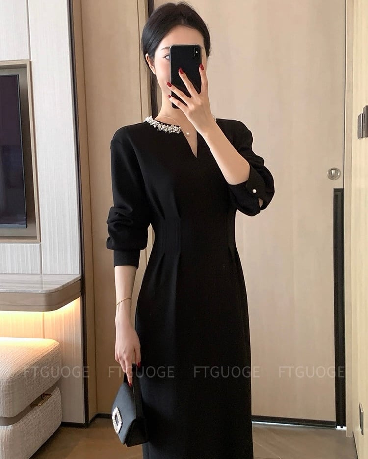Vカット ビジューワンピース