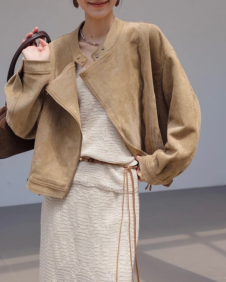 全2色/スタンドカラー スエードジャケット