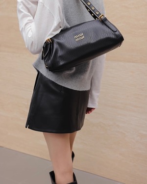 PUレザー Aラインミニスカート