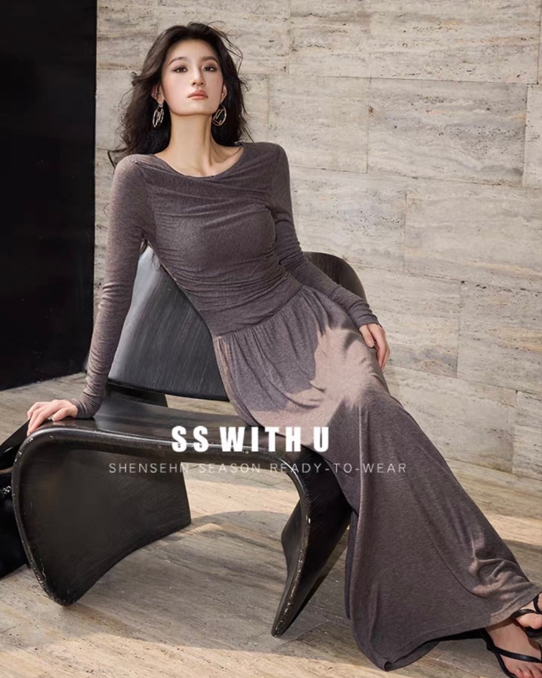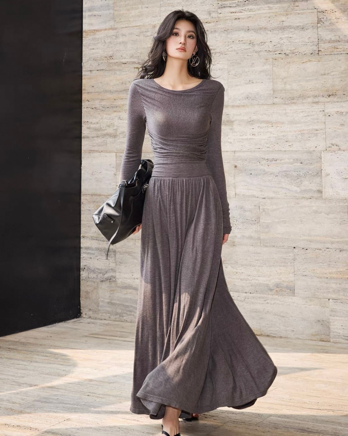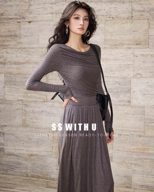 ウエストシャーリング ロングワンピース