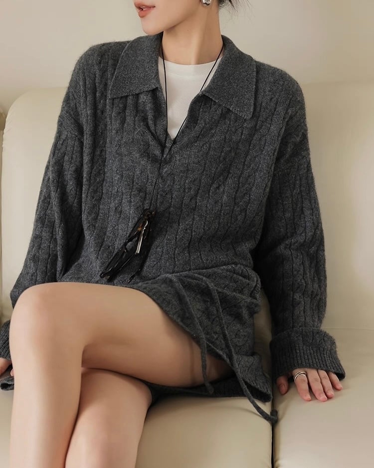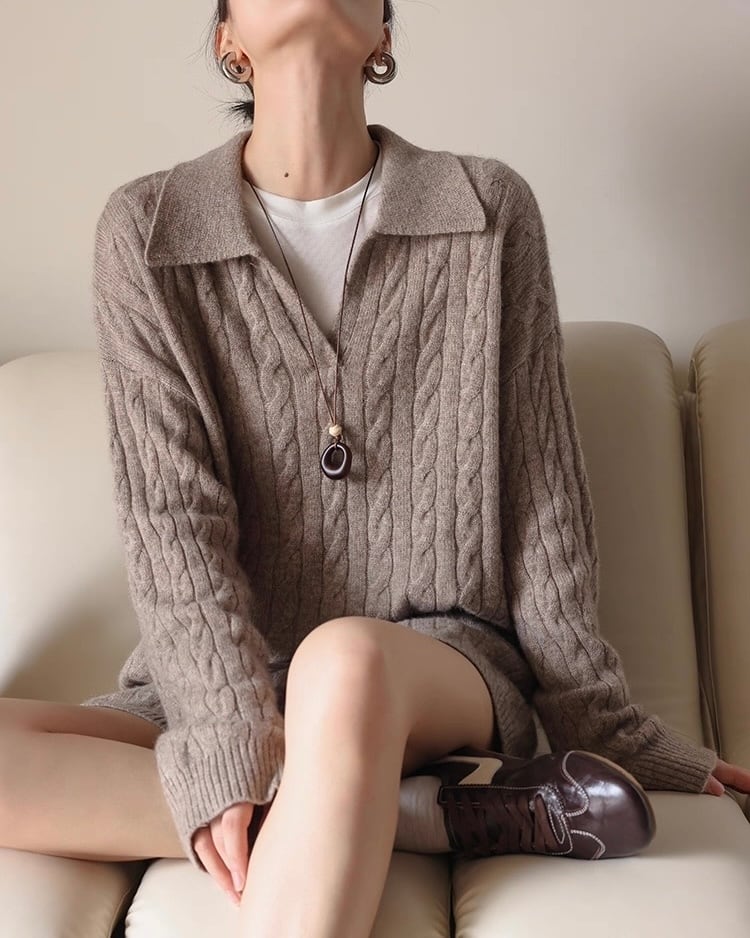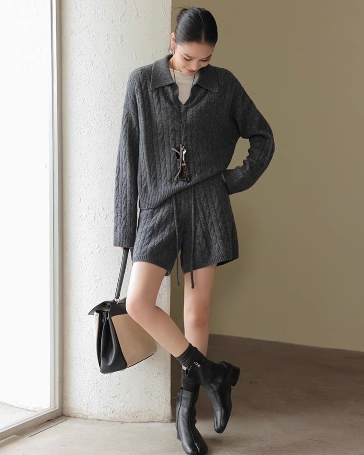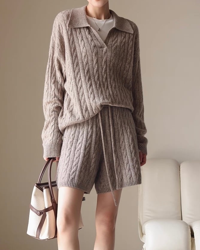 全2色【セットアップ】ケーブルニット+ショートパンツ