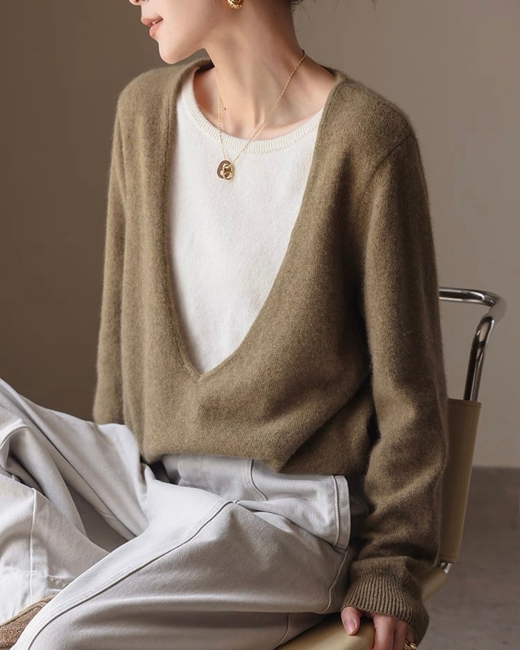 【セットアップ】フェイクレイヤードニット+パンツ