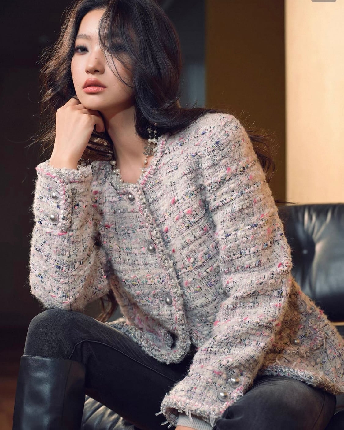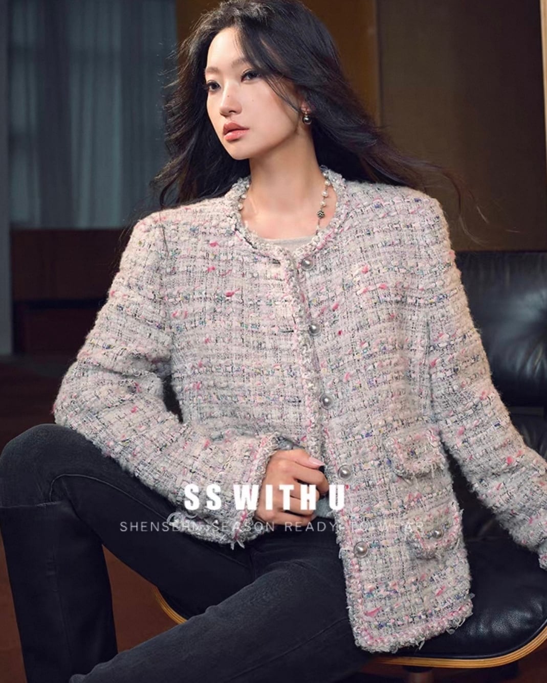 ノーカラー ツイードジャケットコート