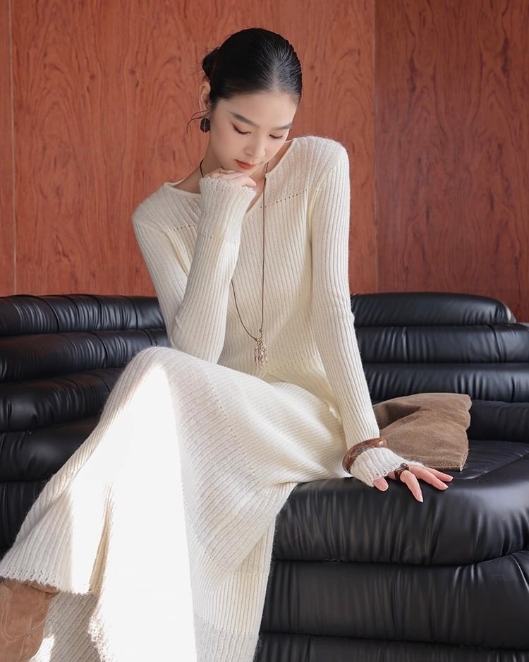 【セットアップ】デザイン リブニット+スカート