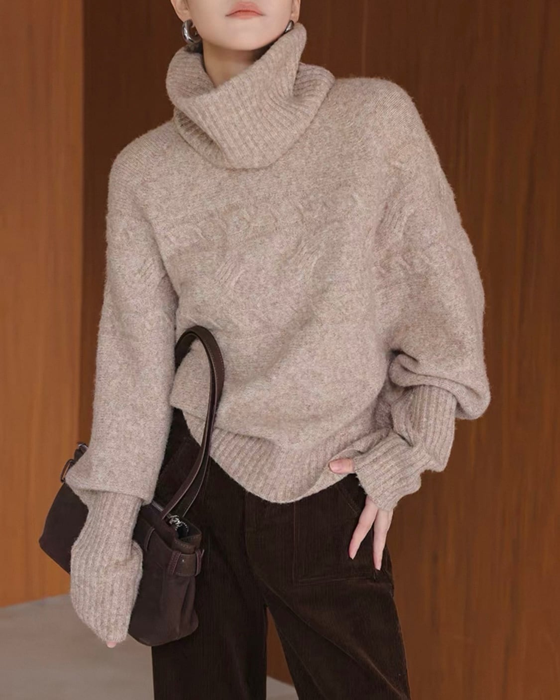 2WAY リブタートル バルーンスリーブニット