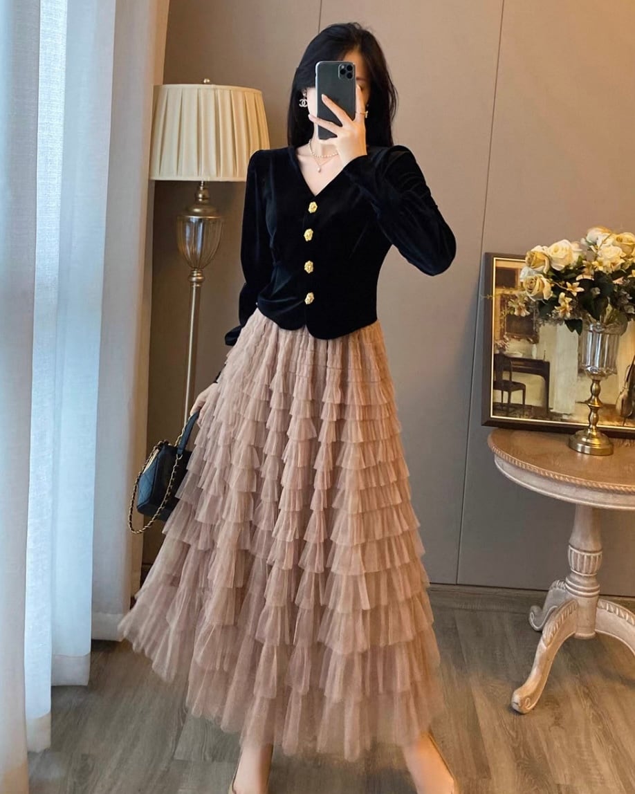 【セット】ベロアトップ+ティアードチュールスカート