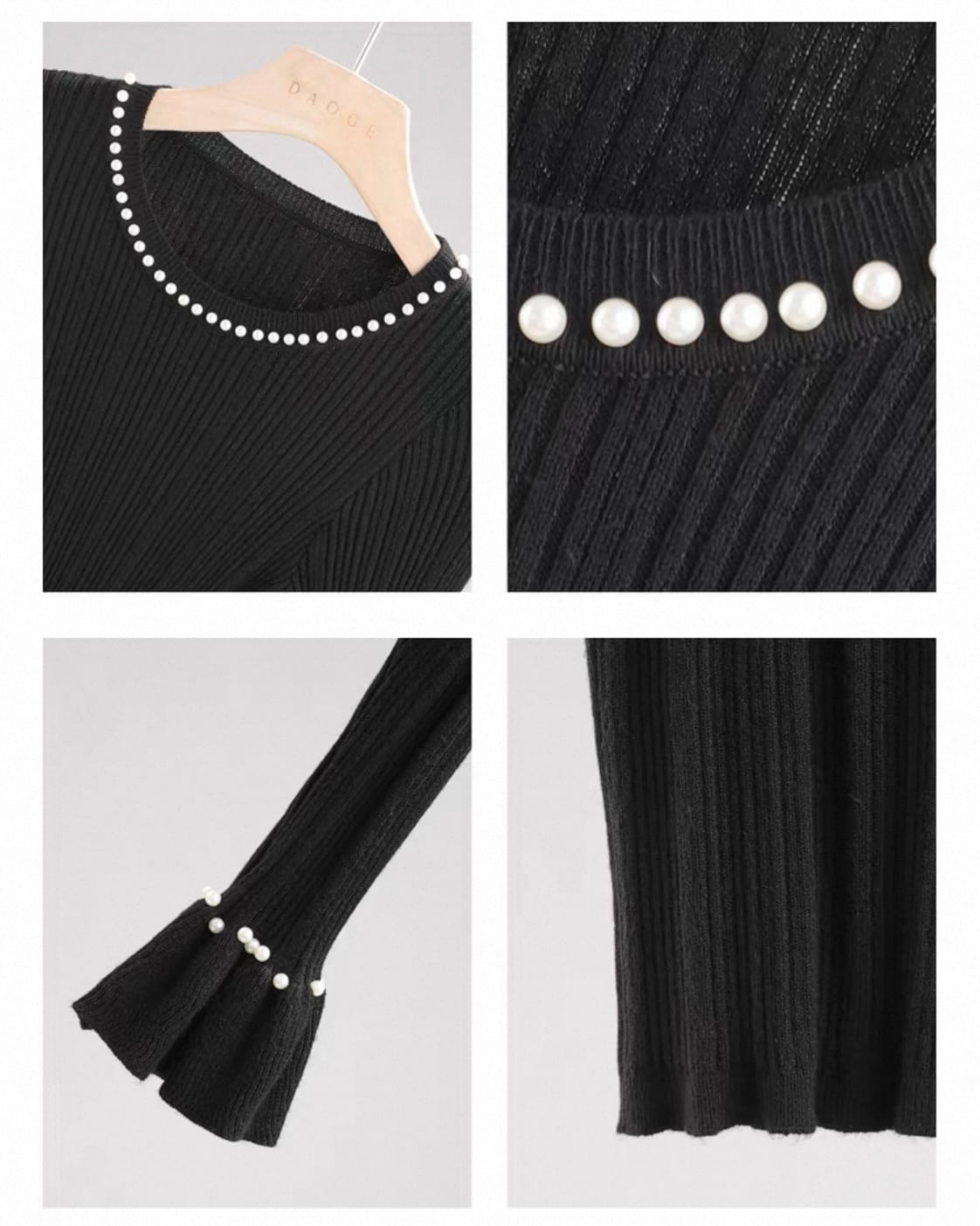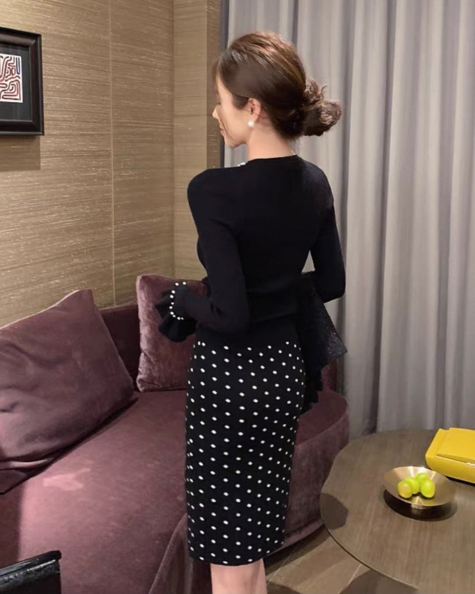【セット】パール リブニット+ドット柄スカート