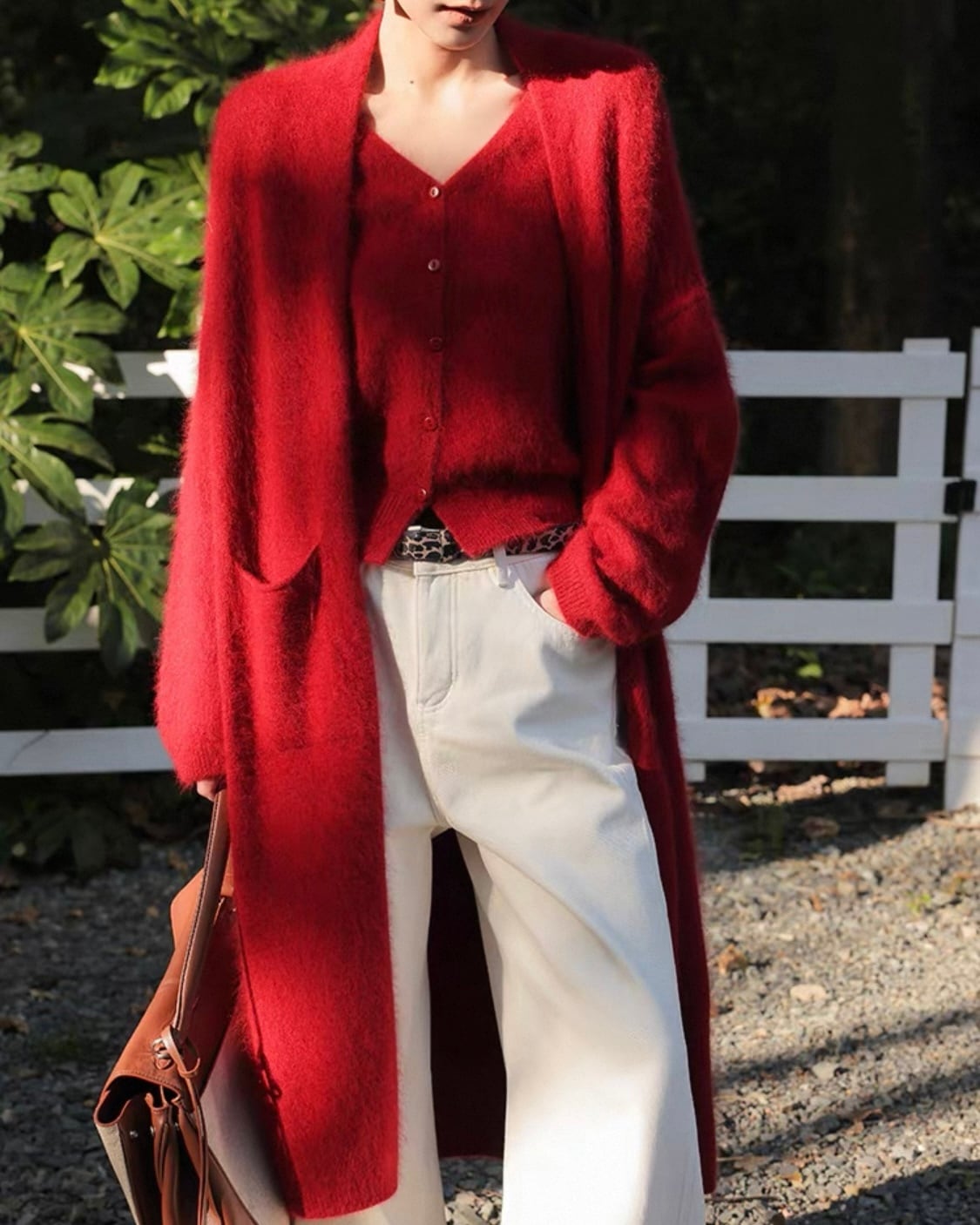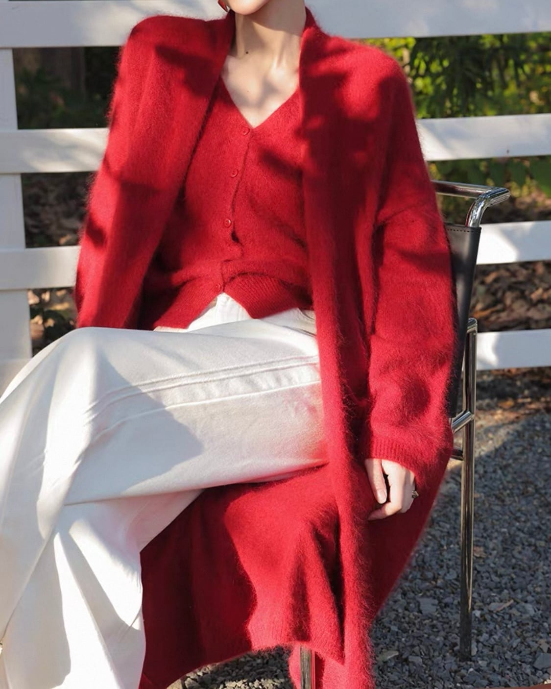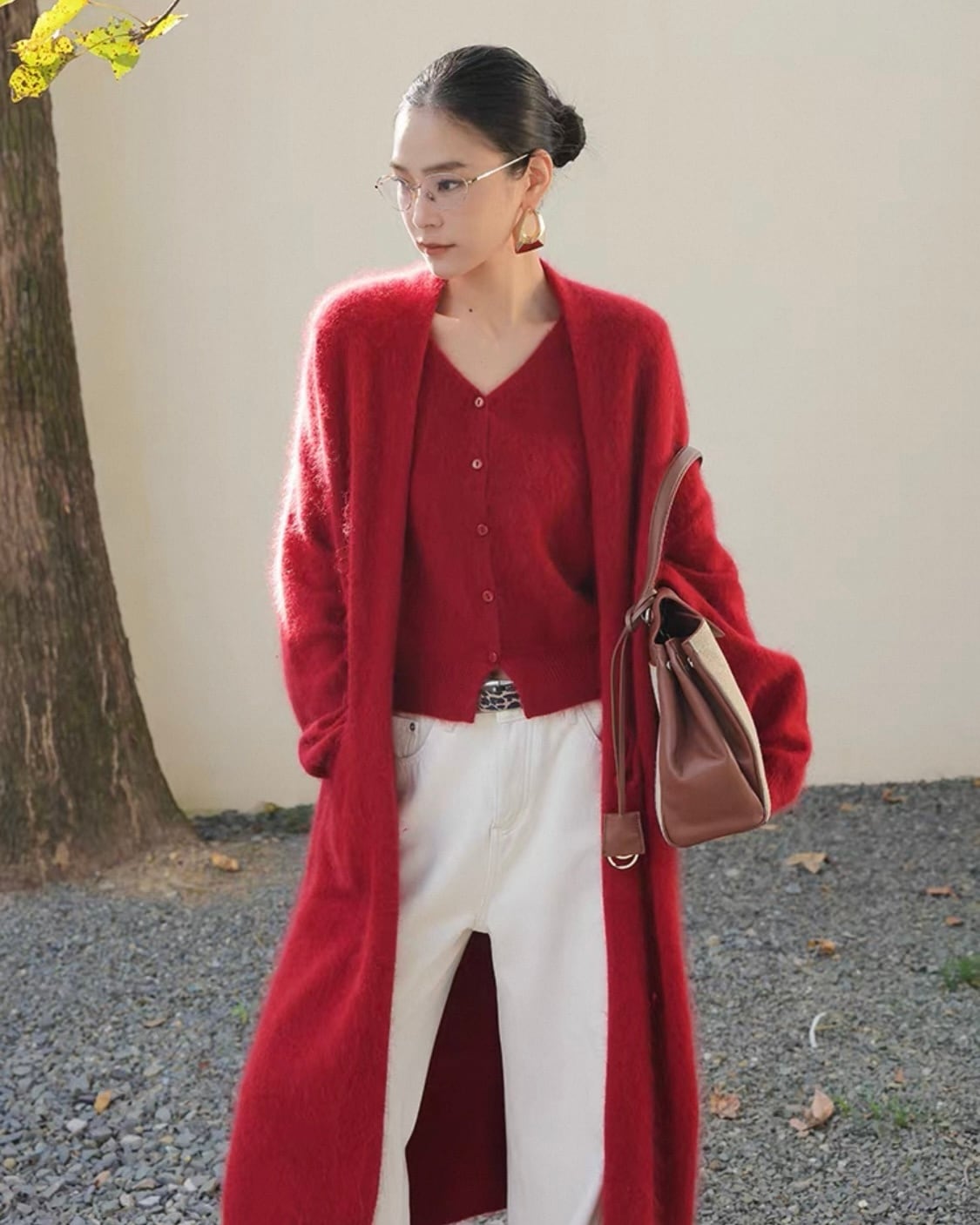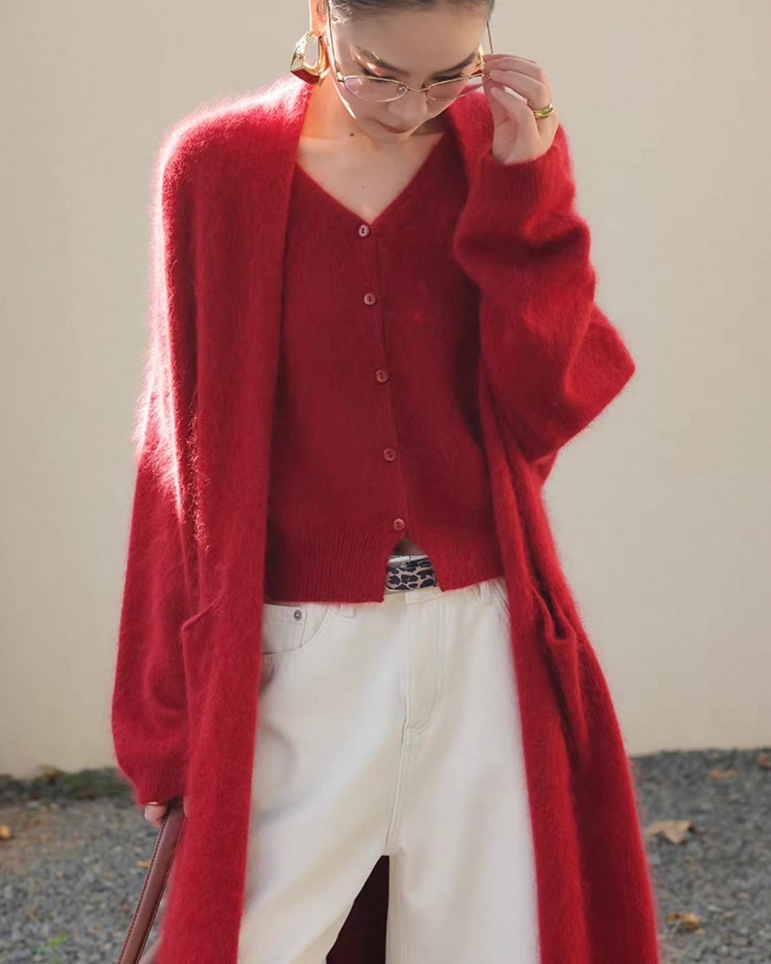 【アンサンブル】アンゴラブレンド ロングカーディガン+ベスト