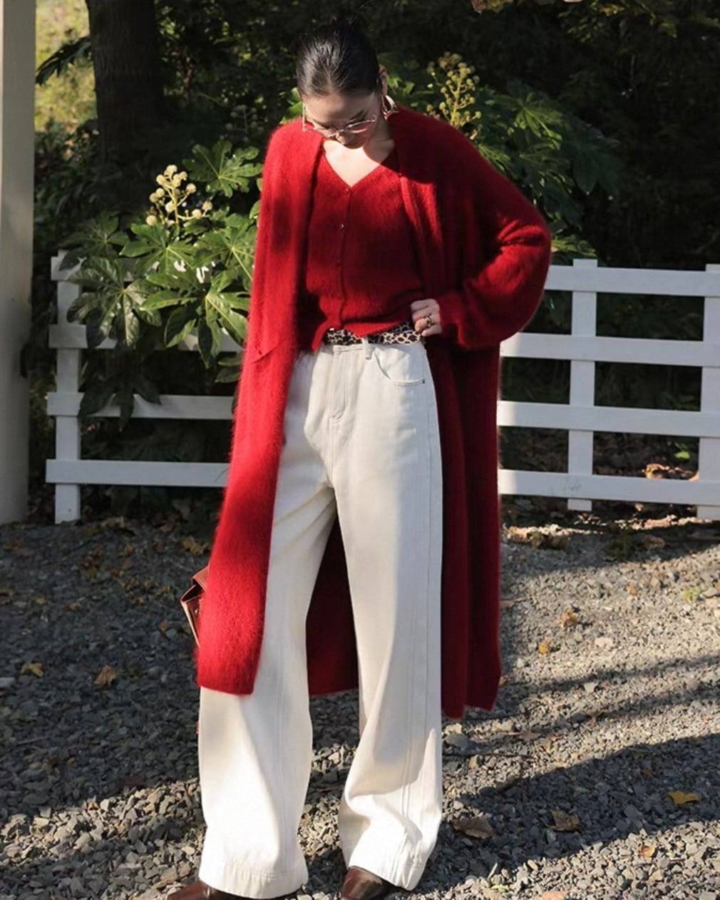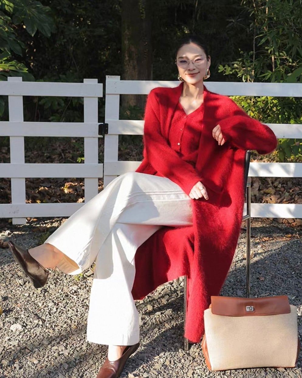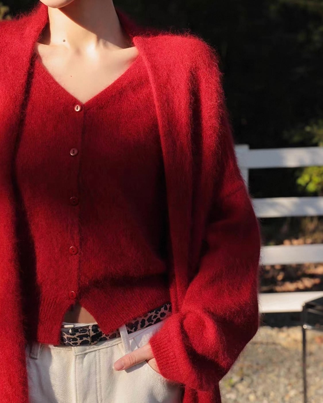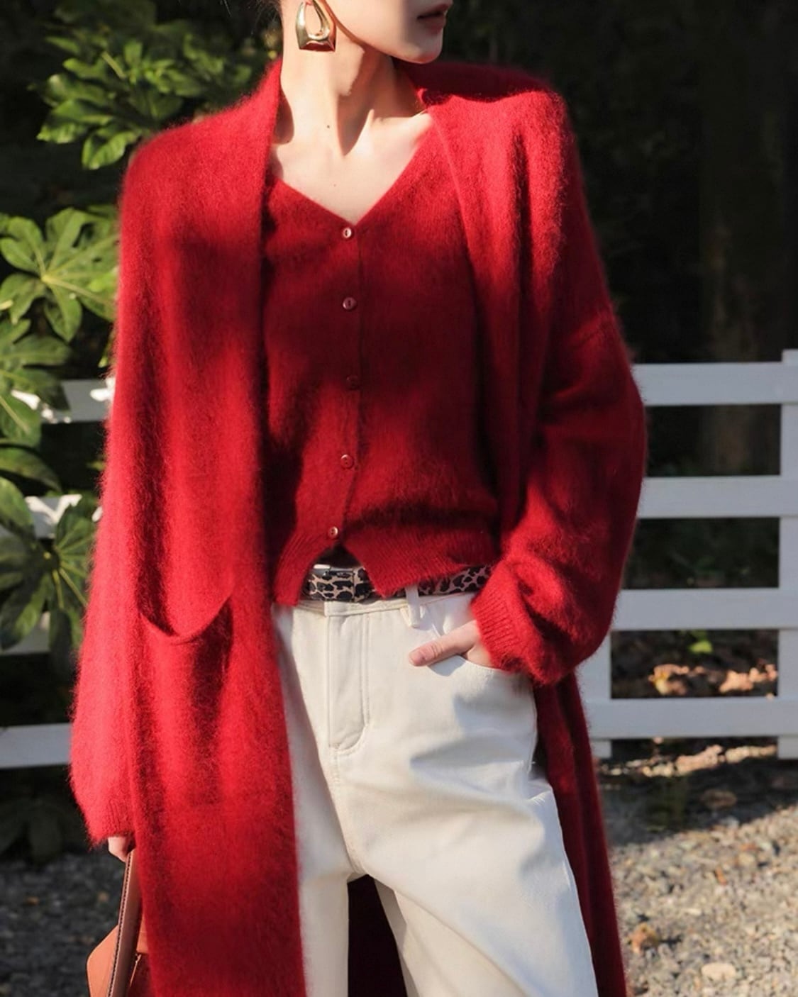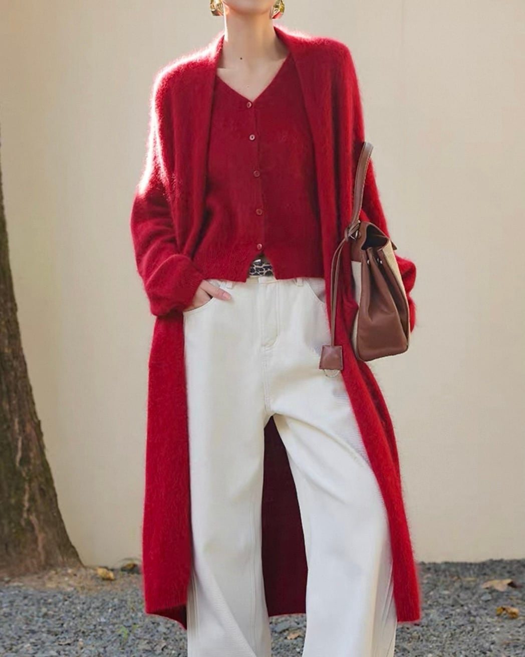 【アンサンブル】アンゴラブレンド ロングカーディガン+ベスト