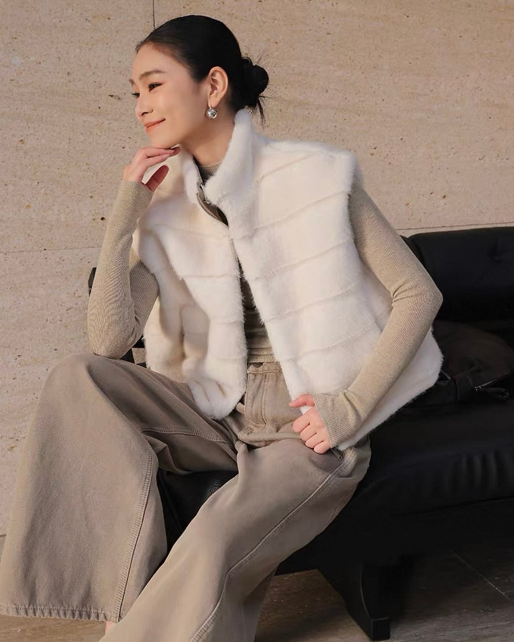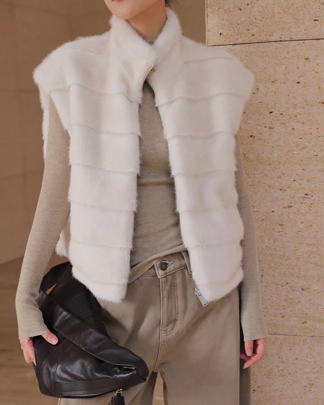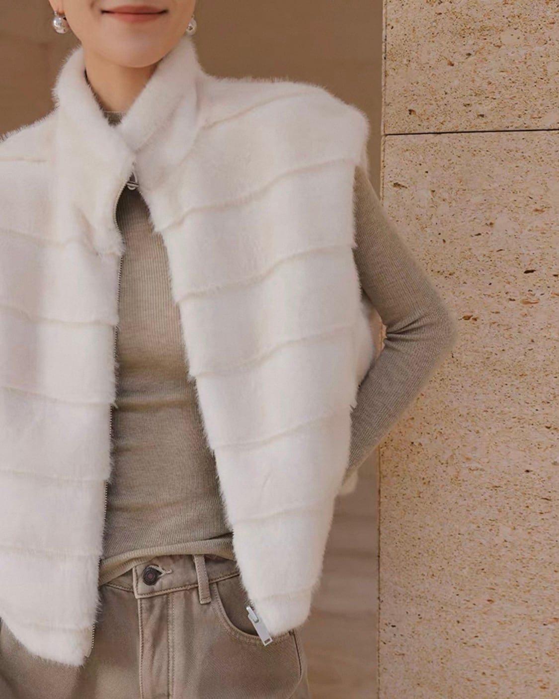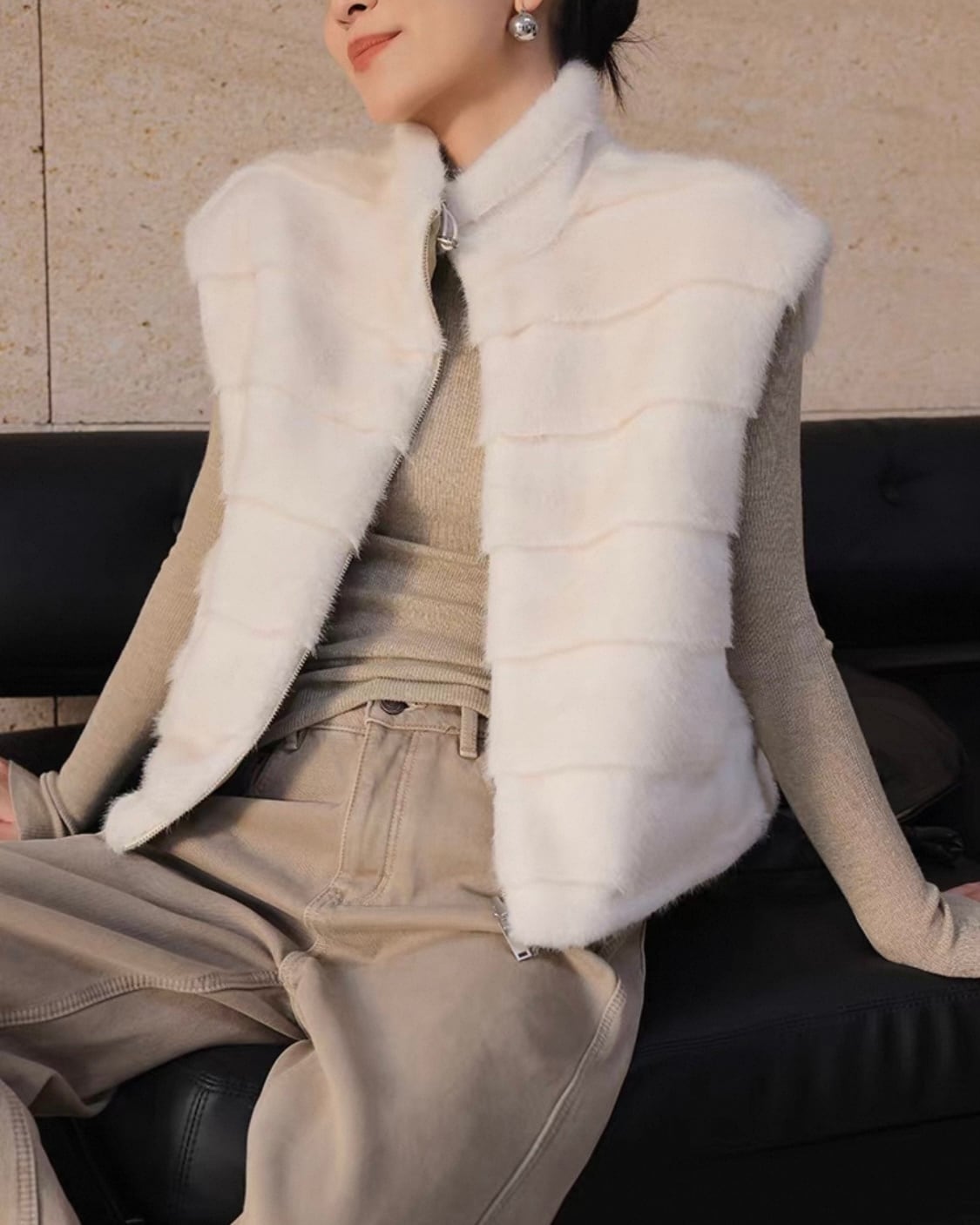フェイクファー ジップベスト