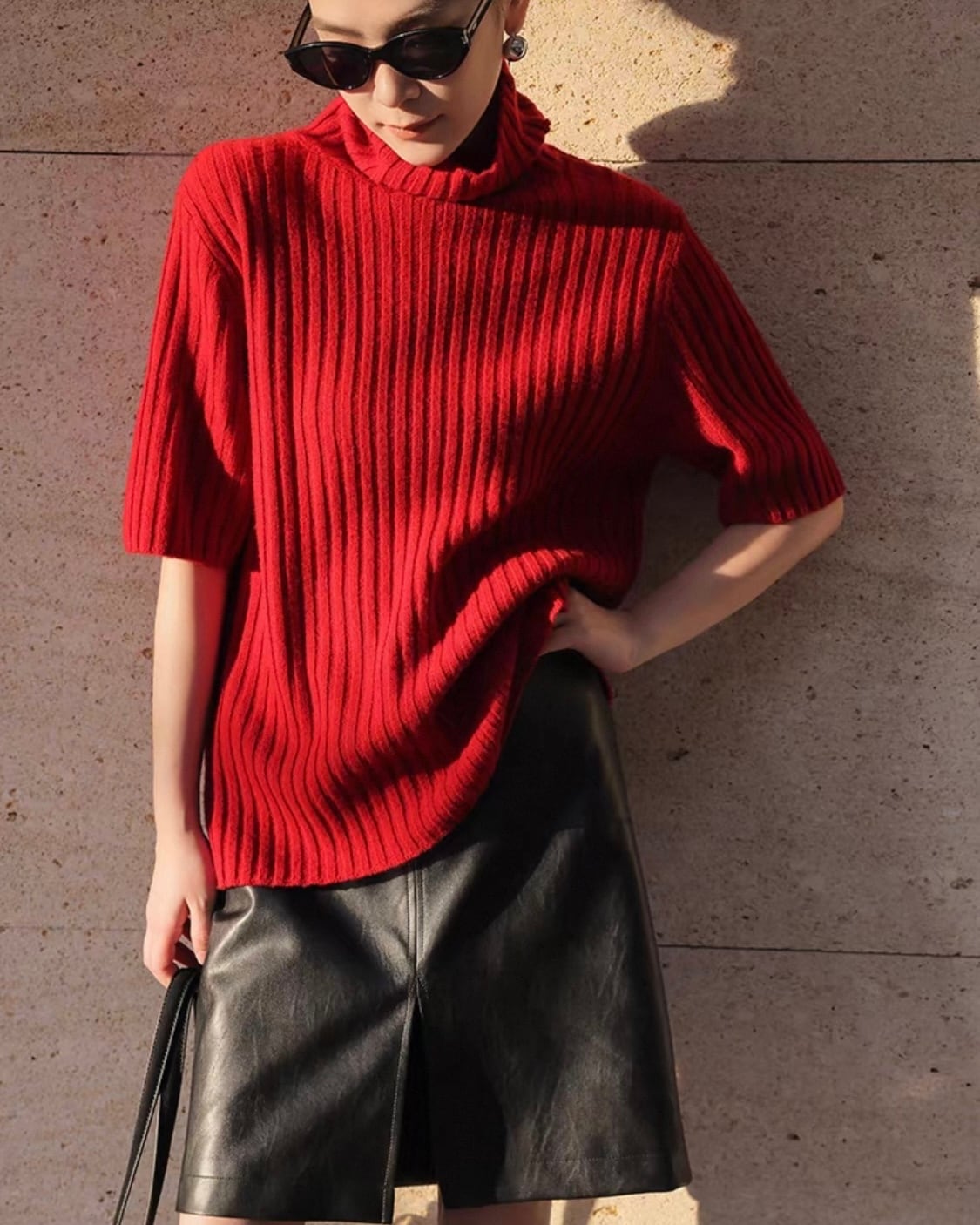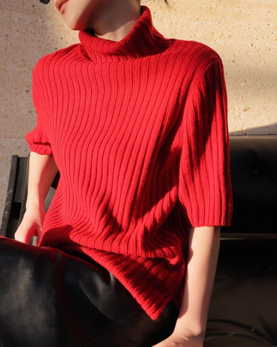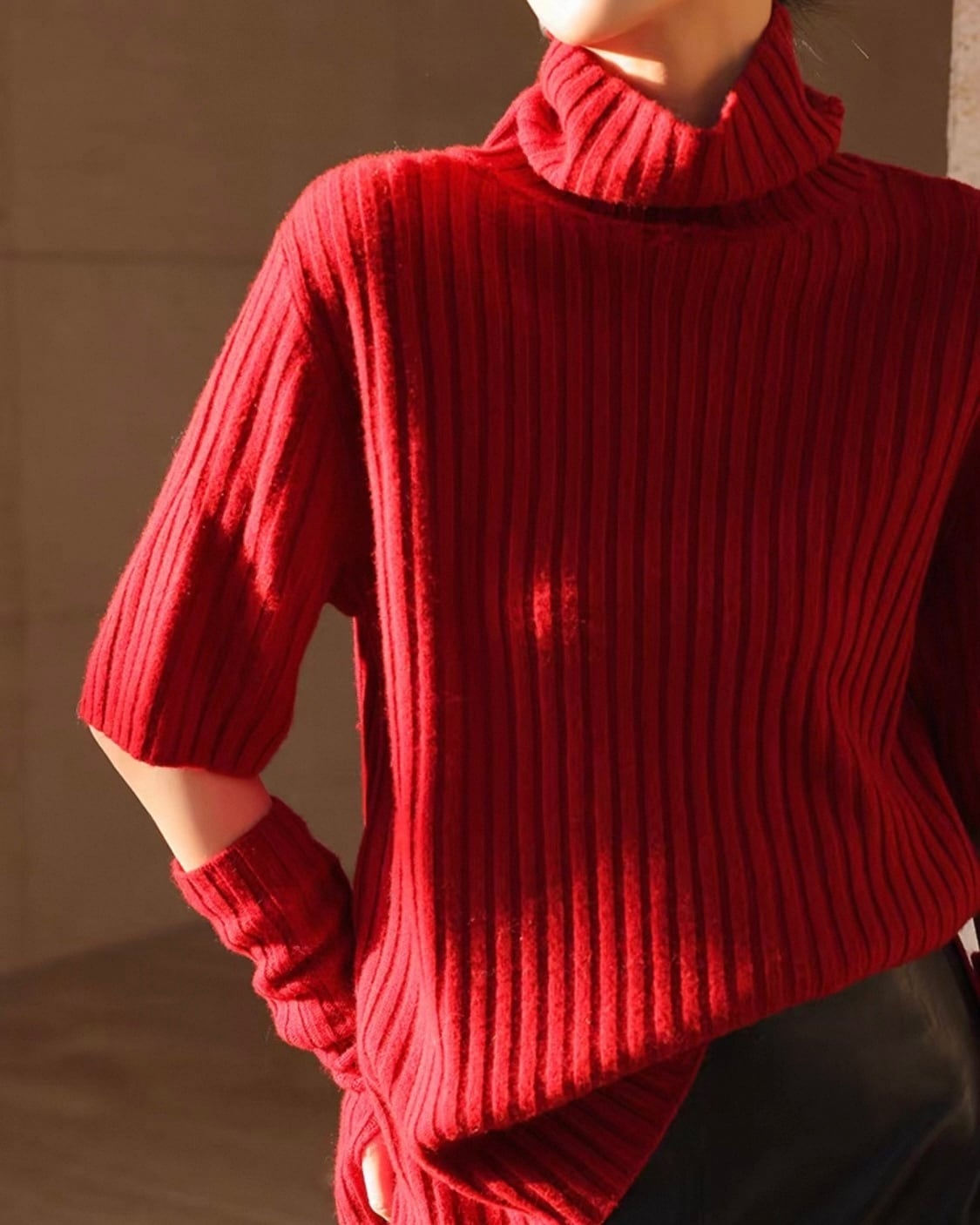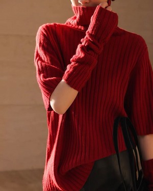 【セット】アームウォーマー+タートルリブニット
