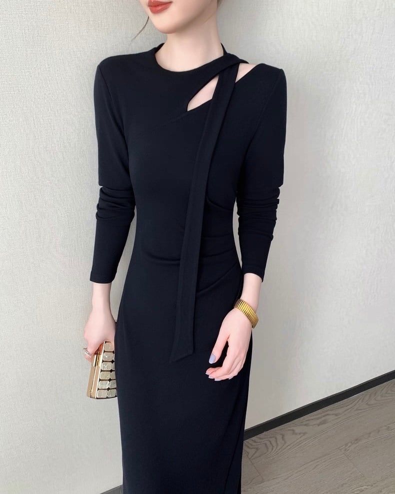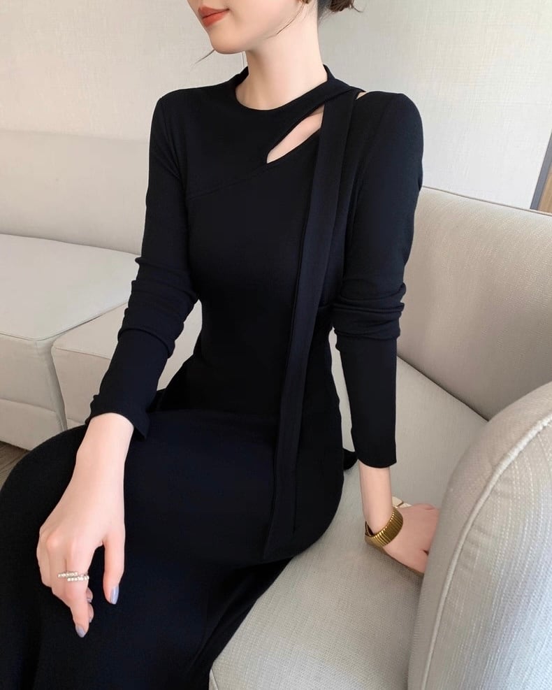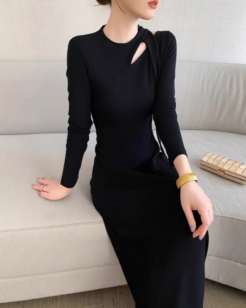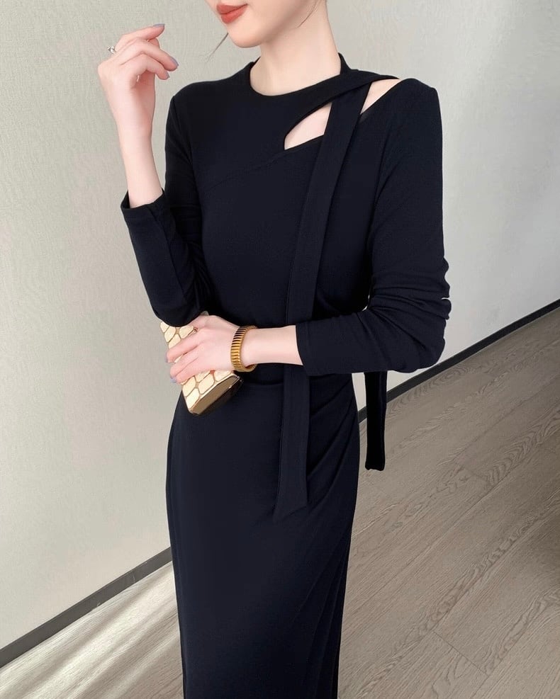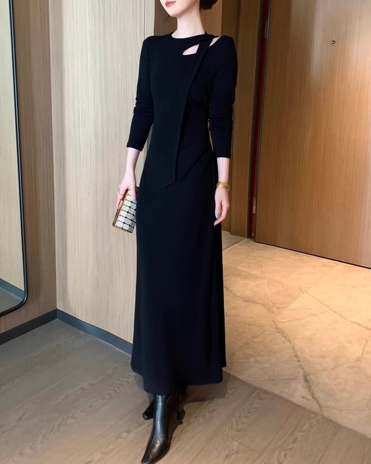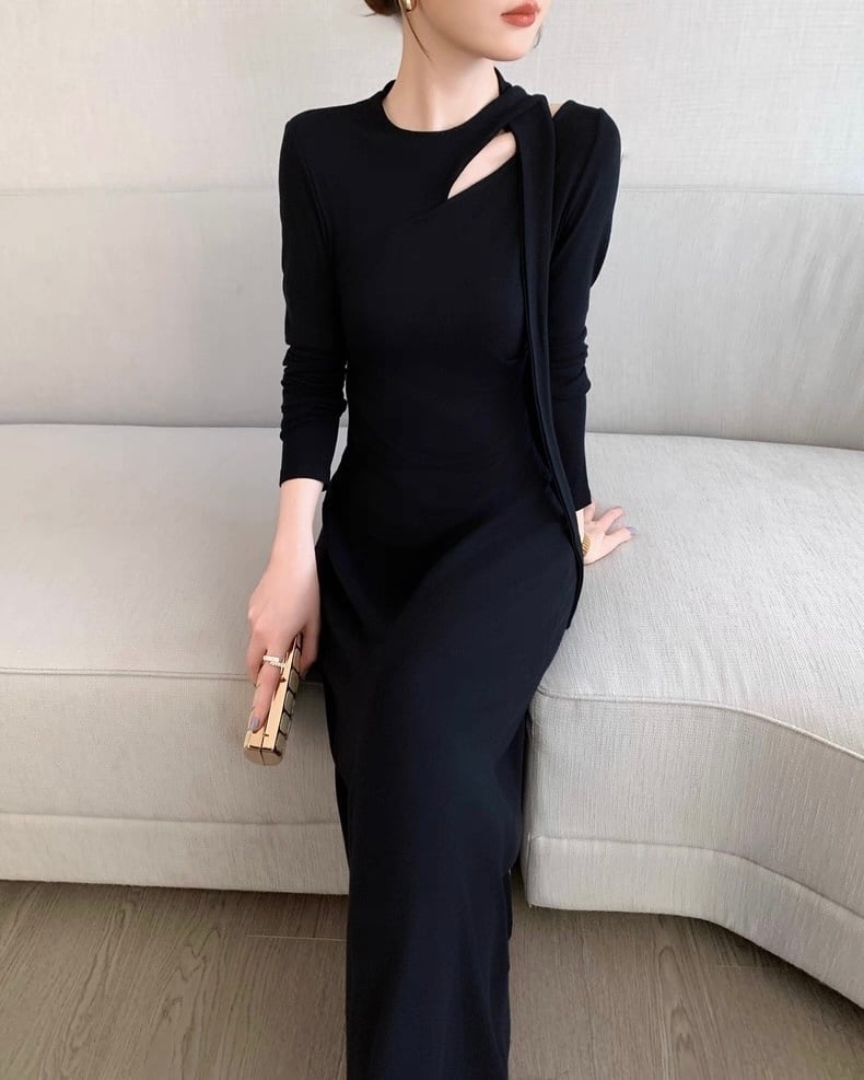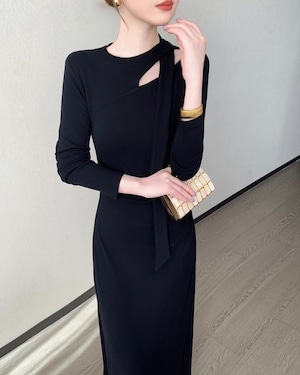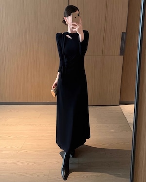 デザインショルダー ロングワンピース