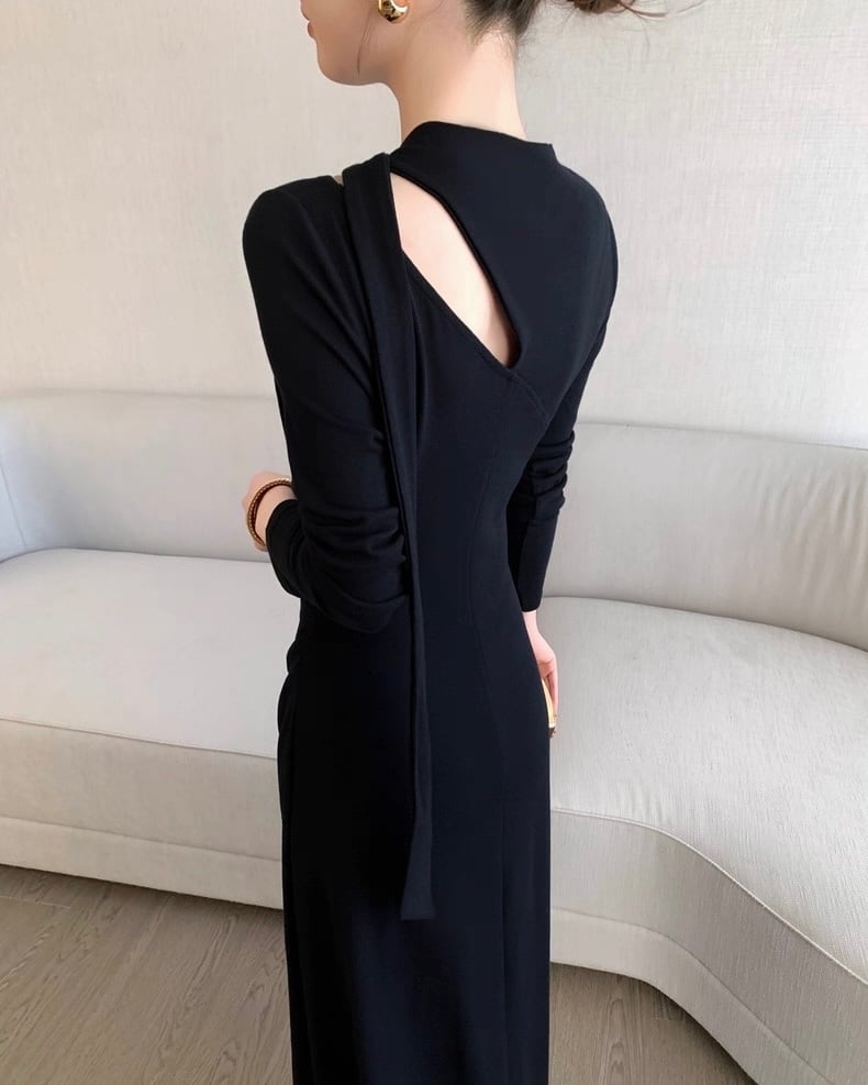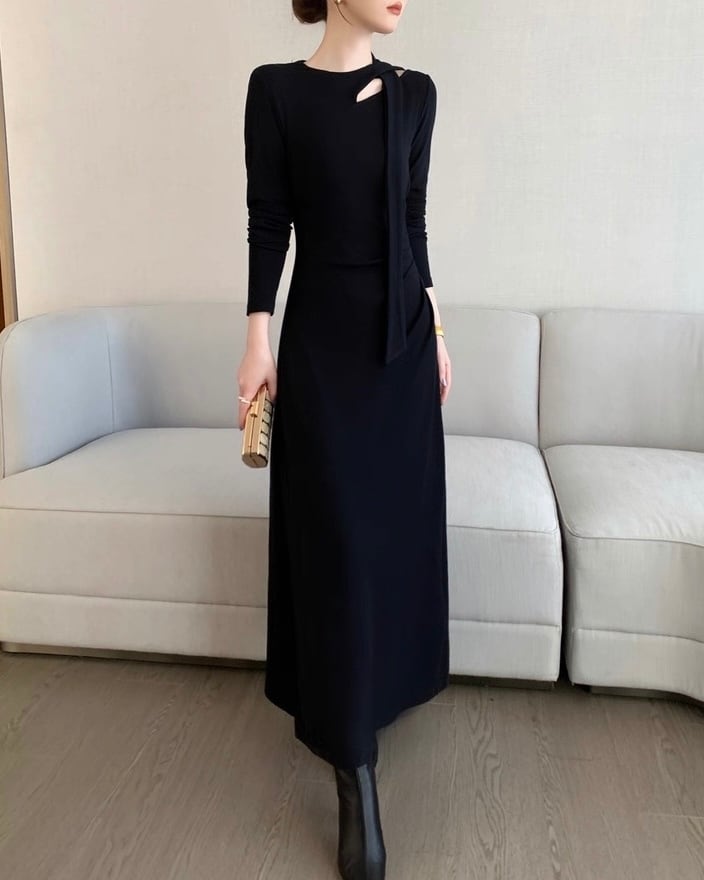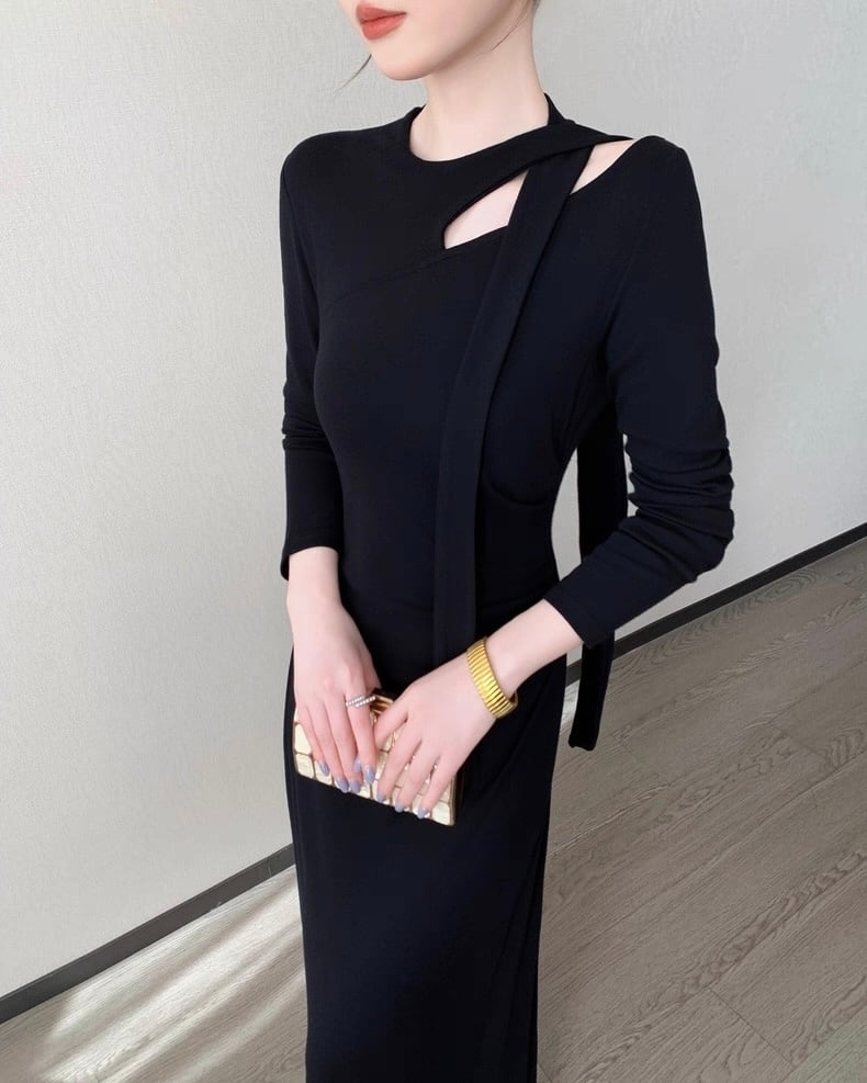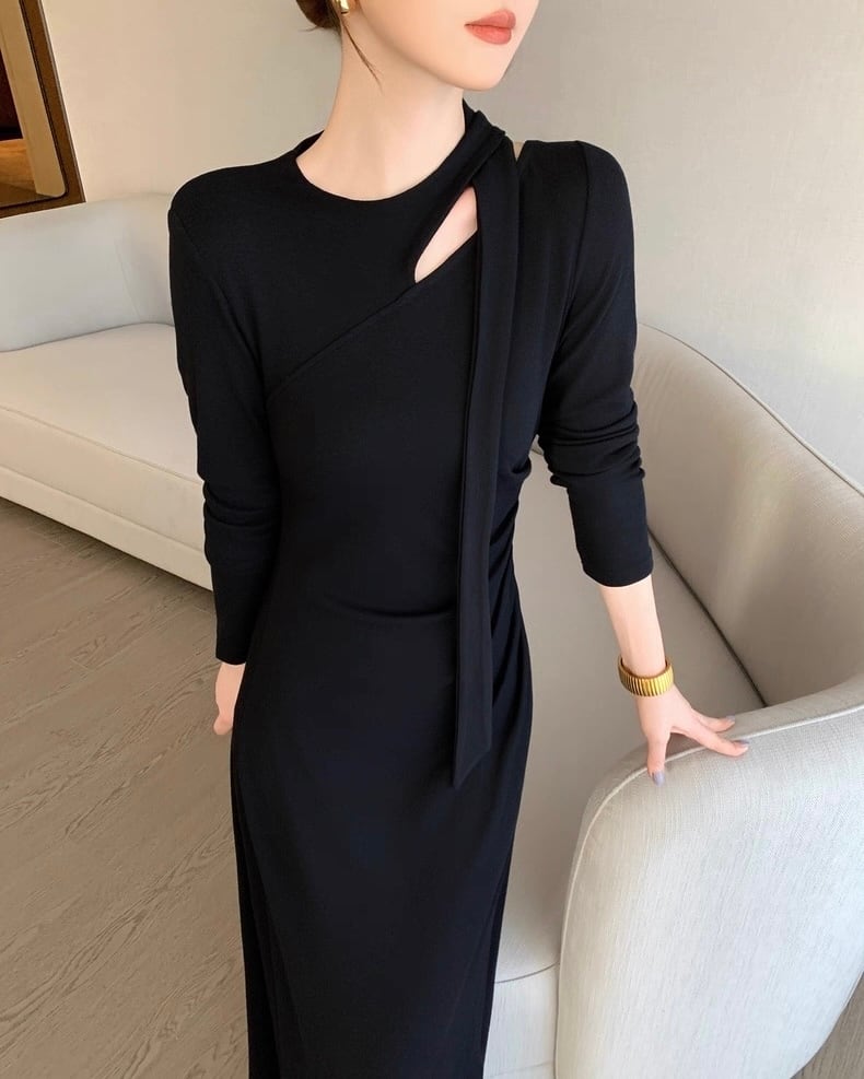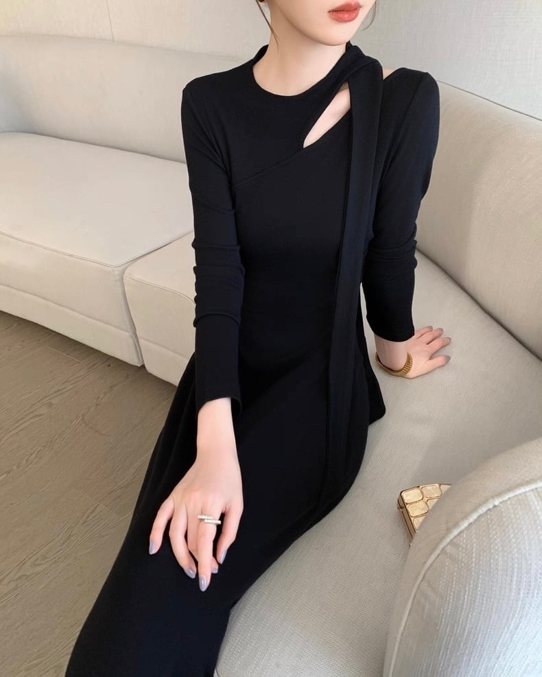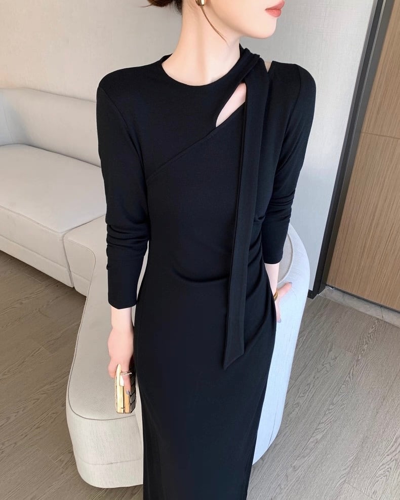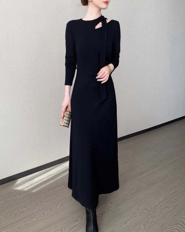 デザインショルダー ロングワンピース