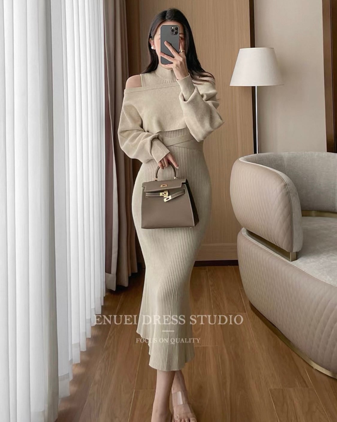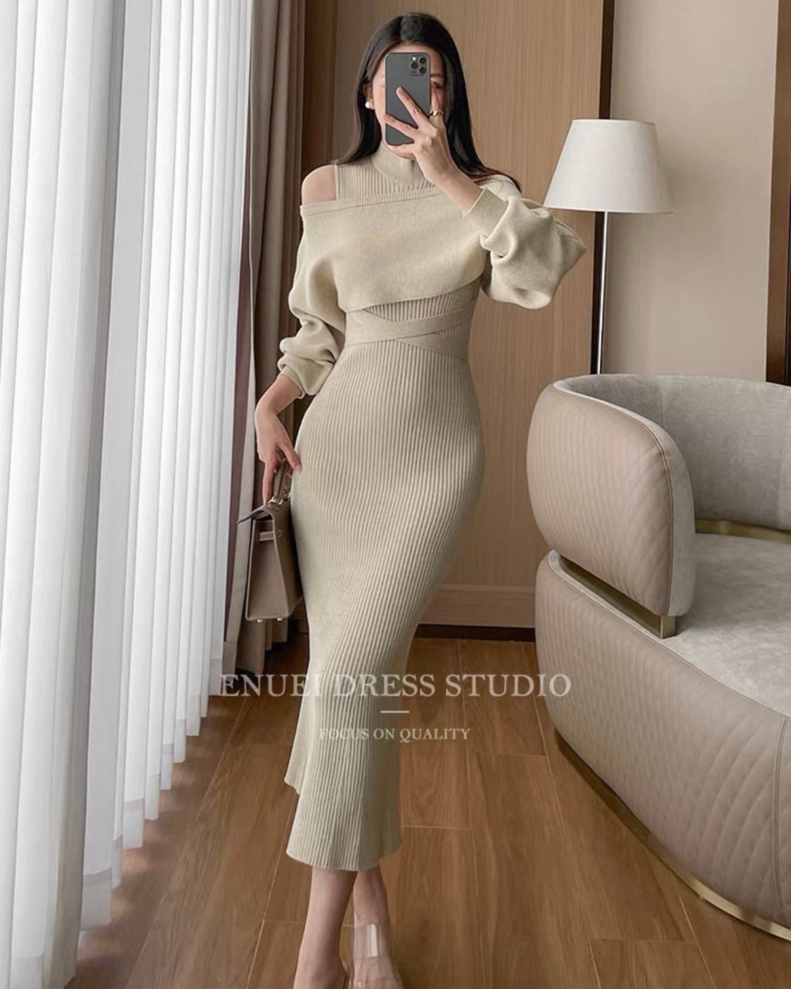 全2色【セット】クロスウエスト リブニットワンピース