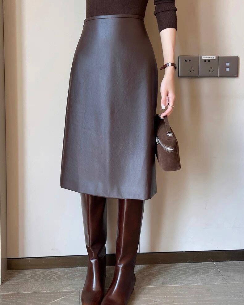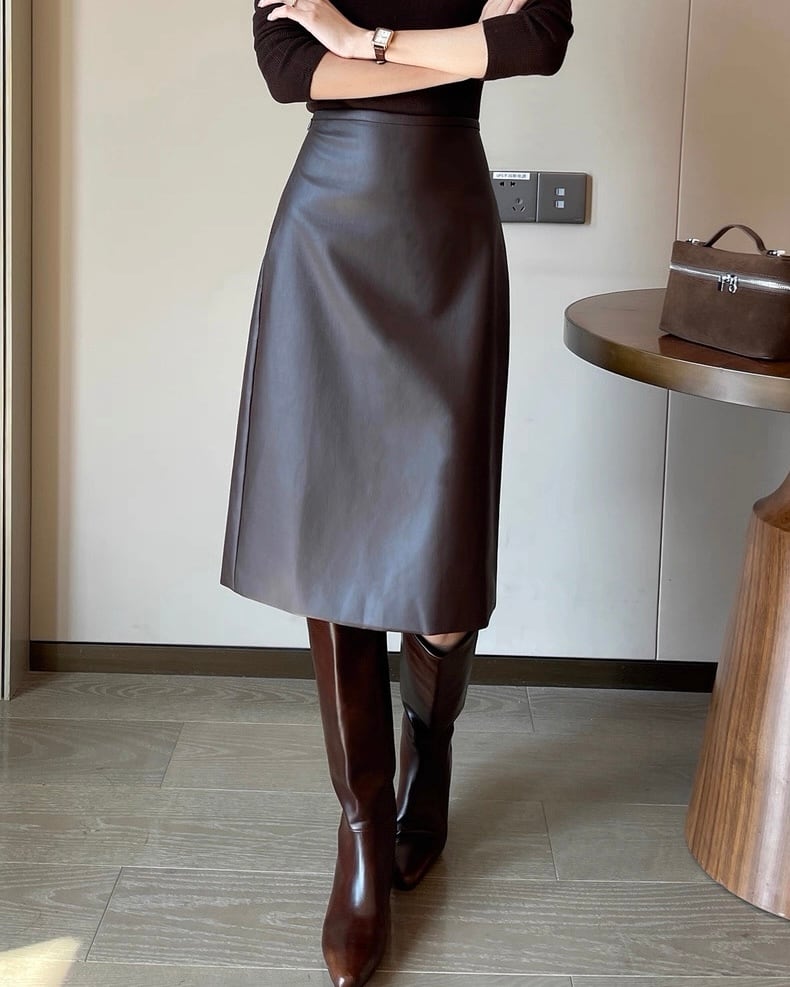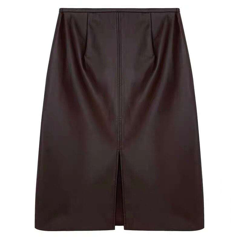PUレザー ミディスカート