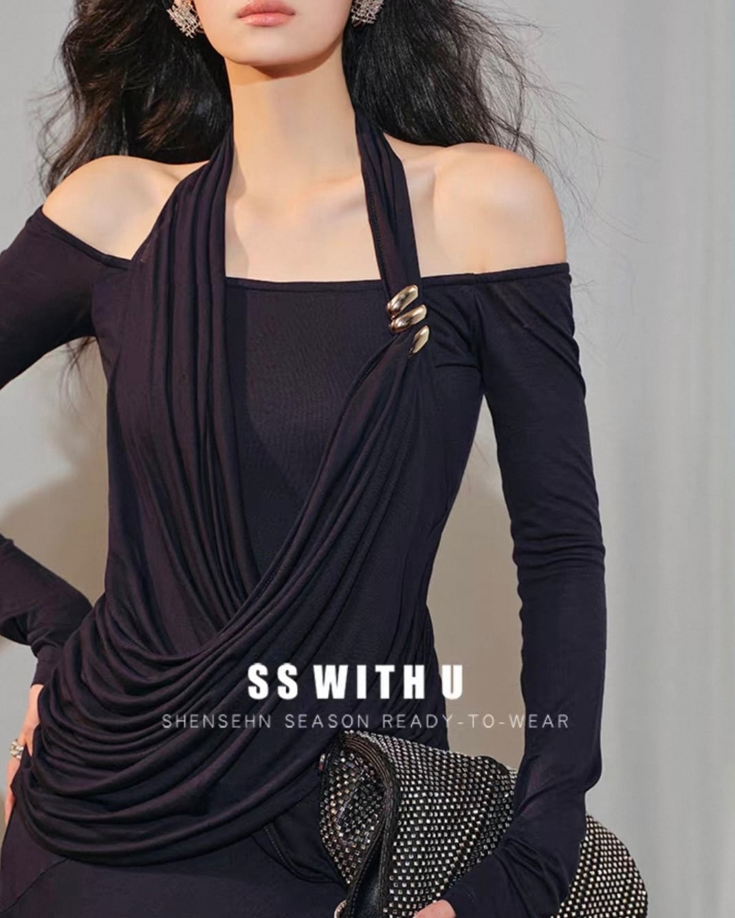 オフショル×ホルターネック ドレープワンピース