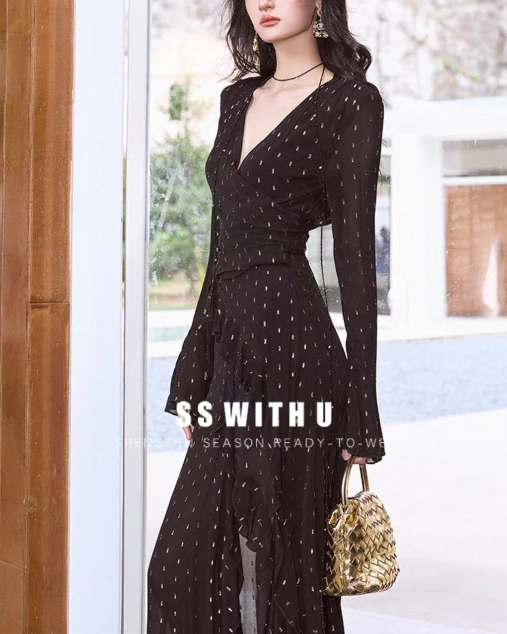 カシュクール ドットシフォンワンピース
