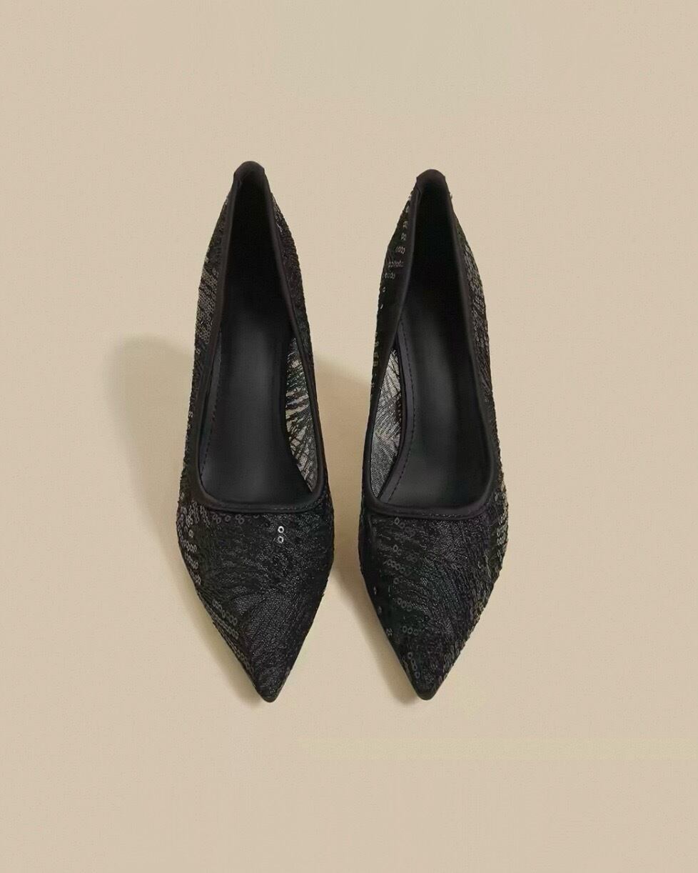 全3色/シアーメッシュ ポインテッドパンプス