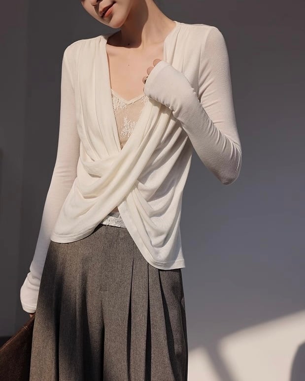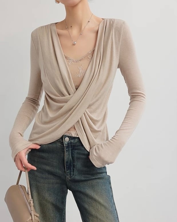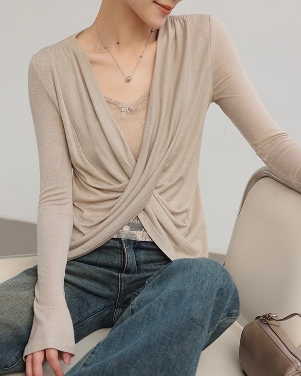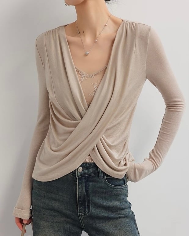 全2色/レースレイヤード フロントクロストップス