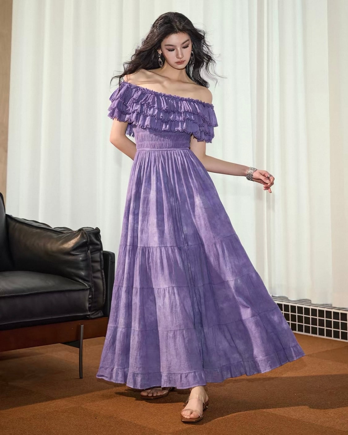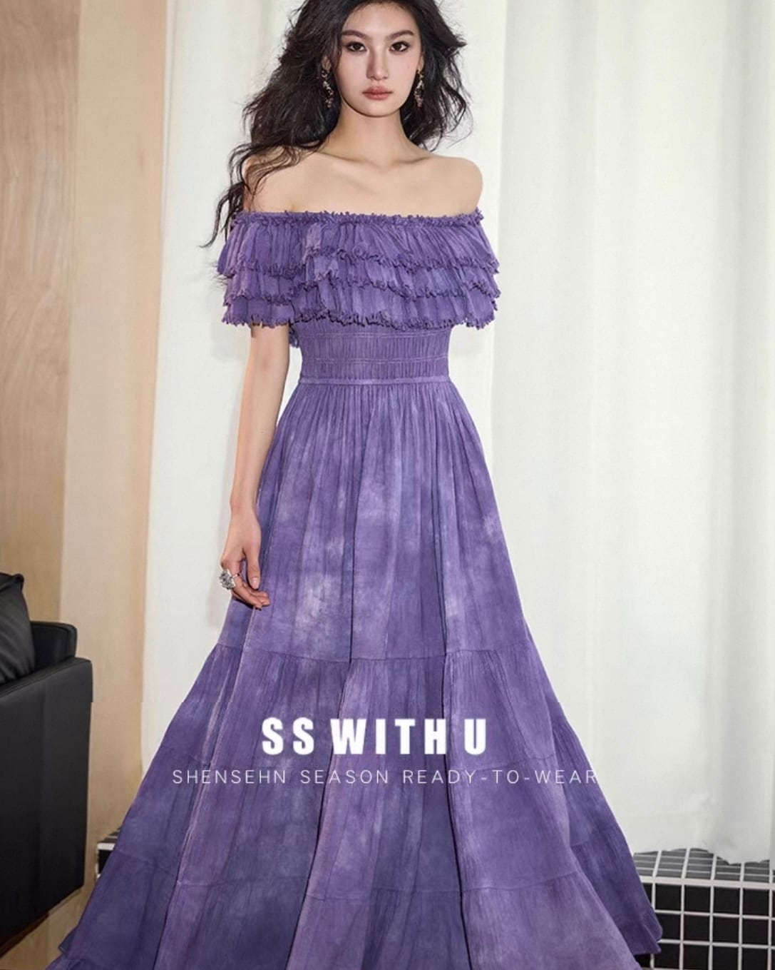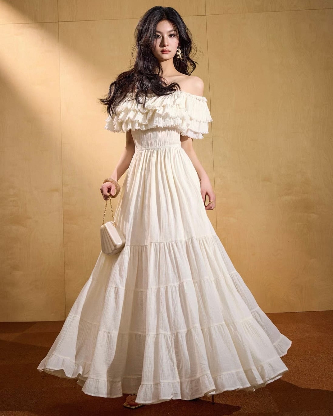 フリルオフショル ティアードワンピース