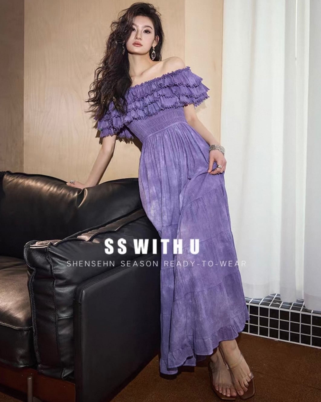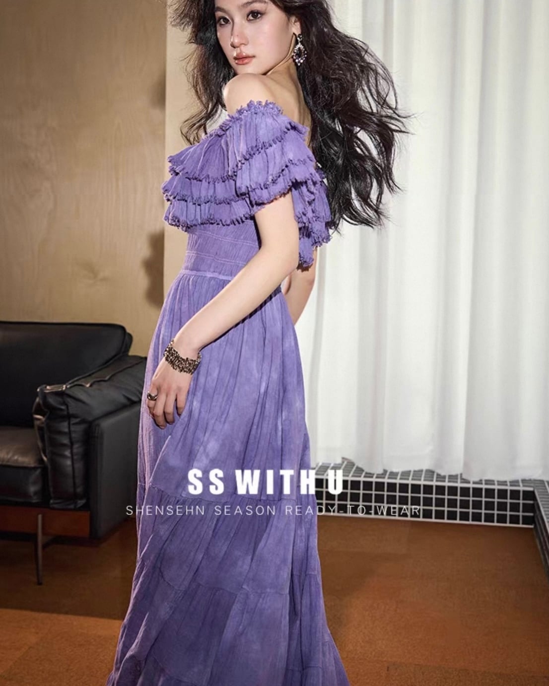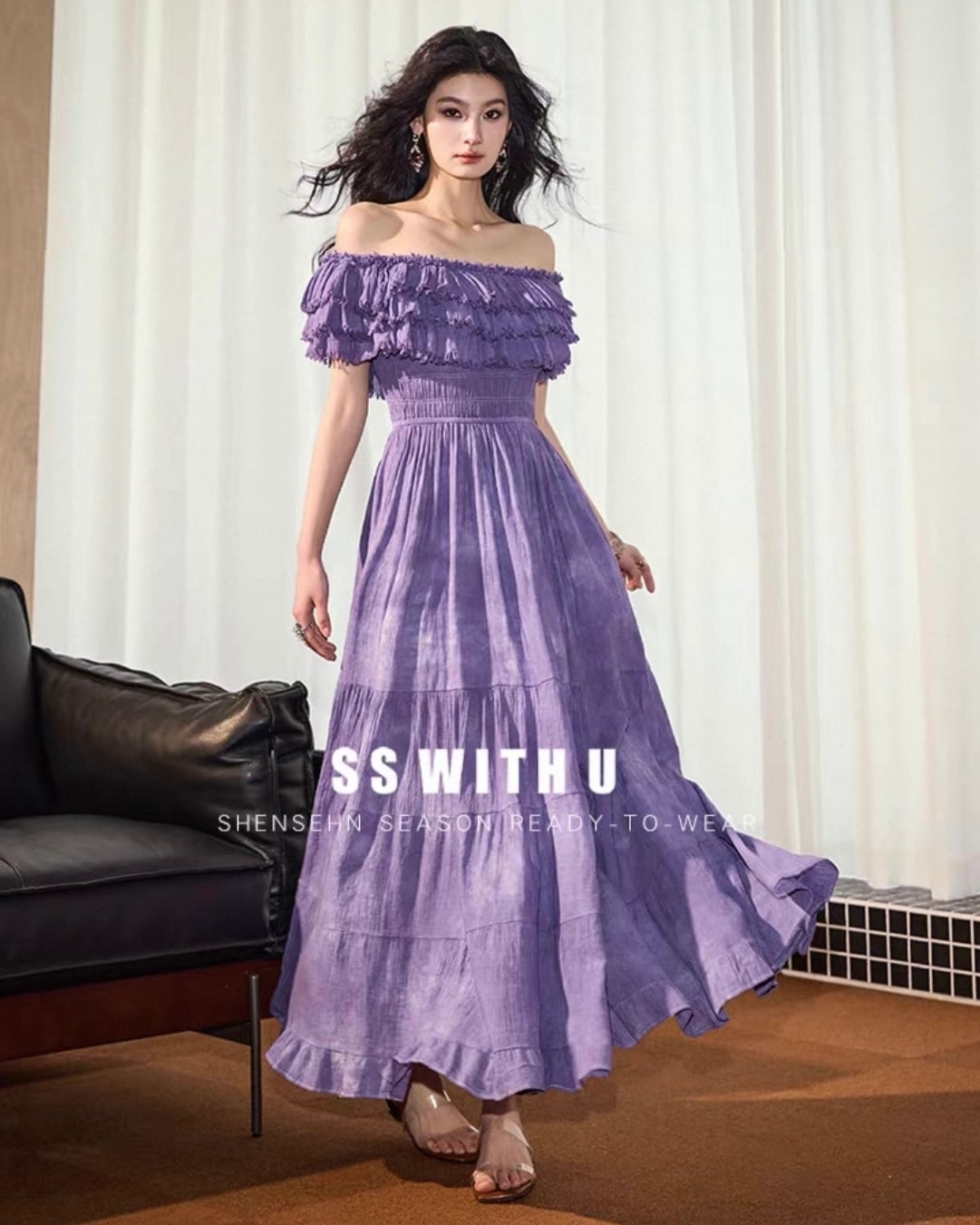 フリルオフショル ティアードワンピース