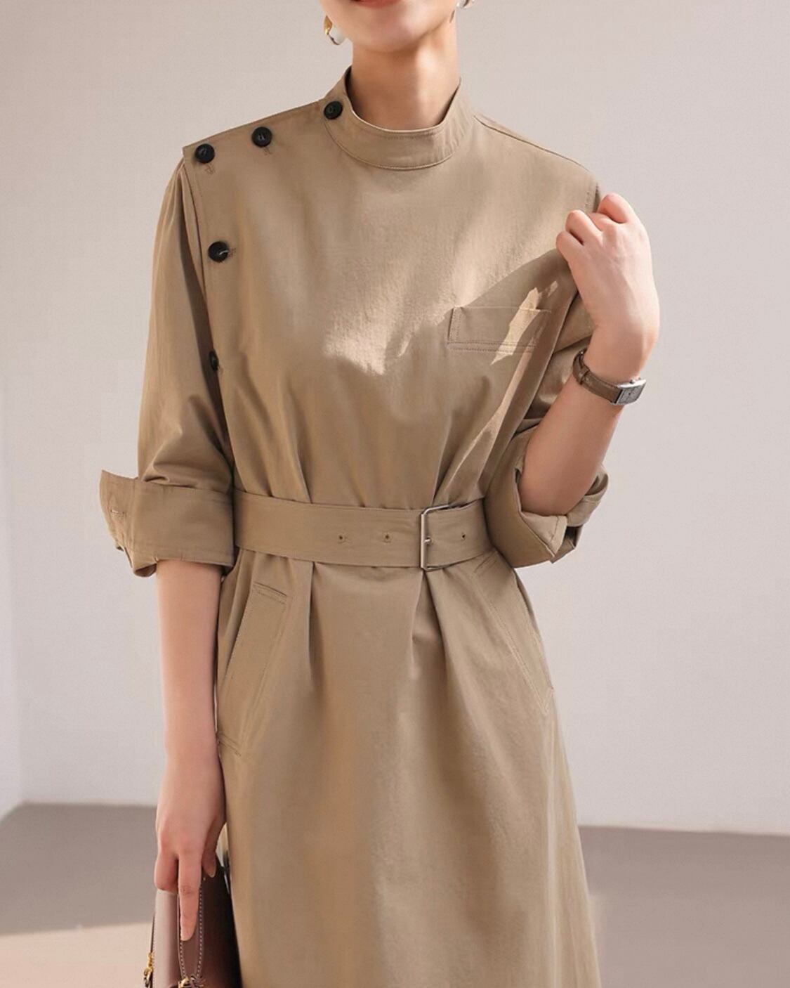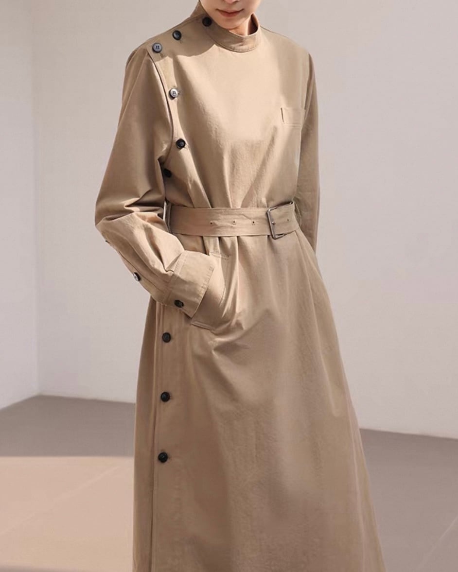 サイドボタン スタンドネックワンピース