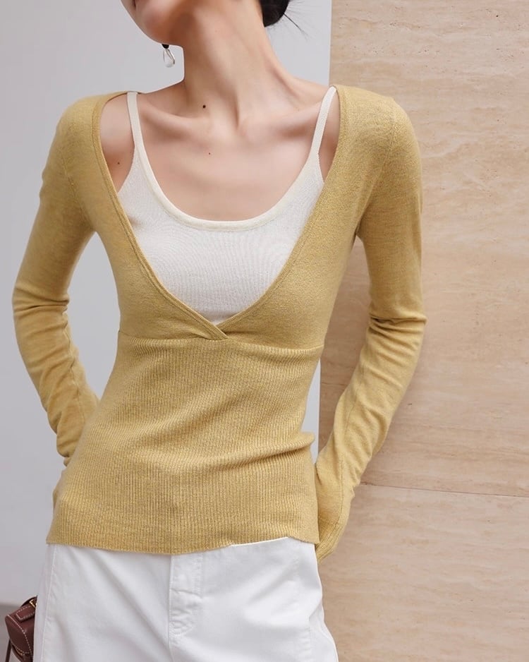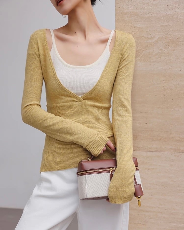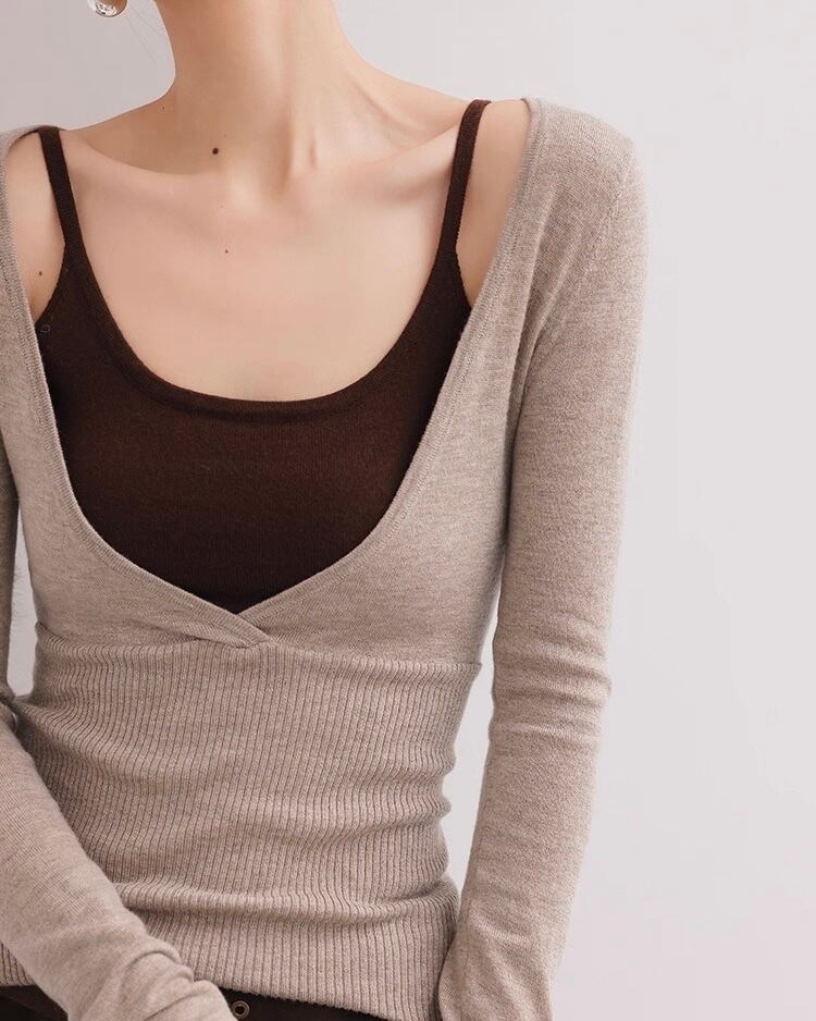 全2色/フェイクレイヤード Vネックニット