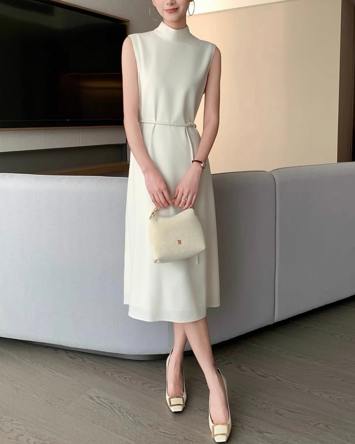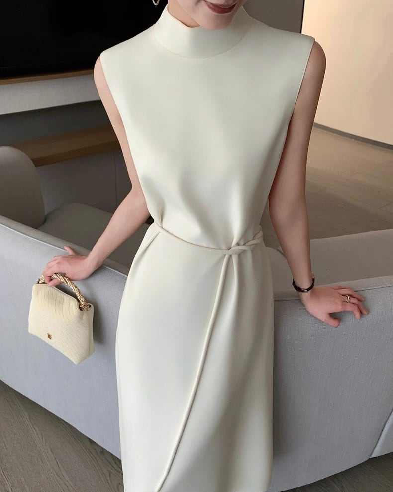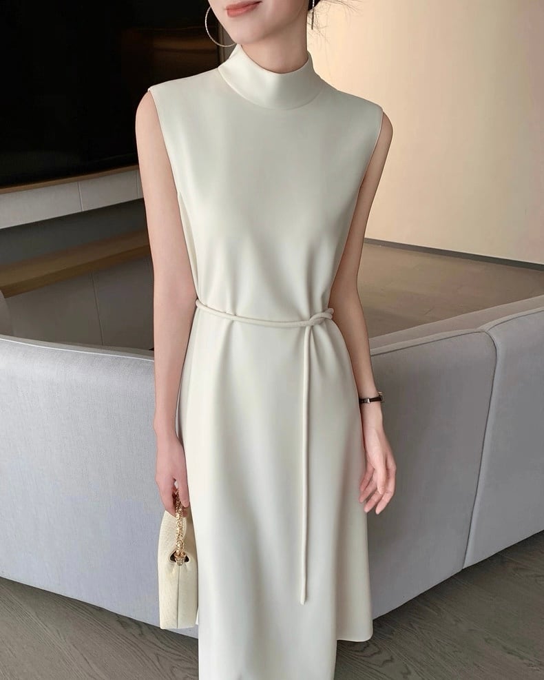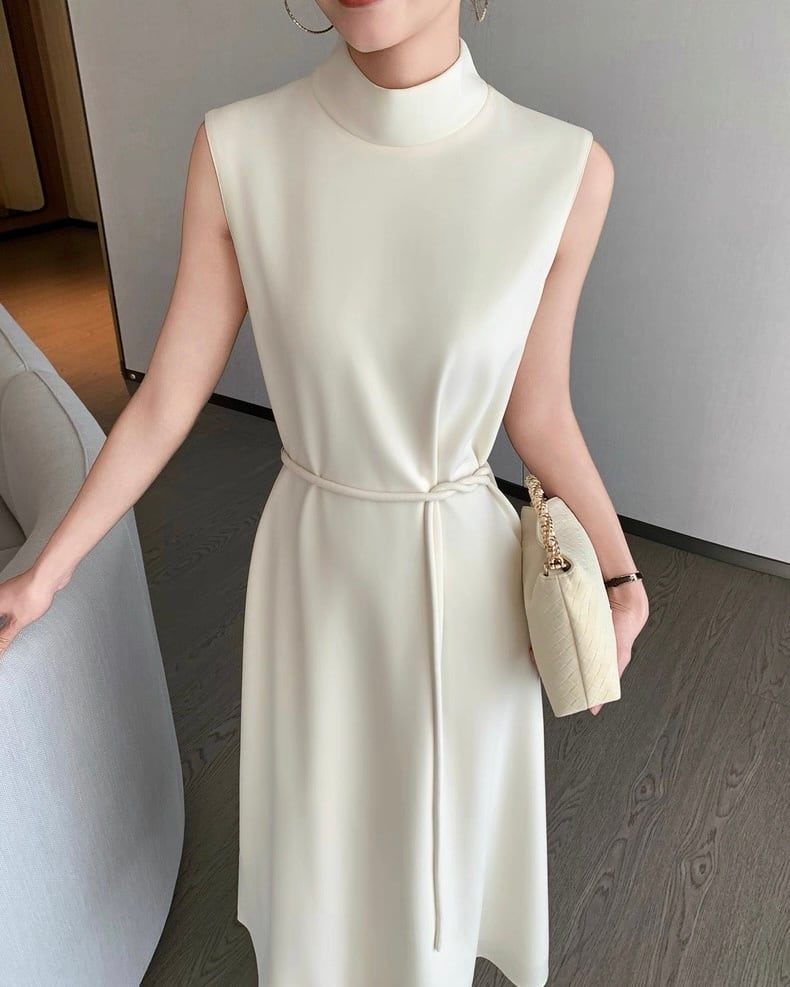 ハイネック ノースリーブフレアワンピース