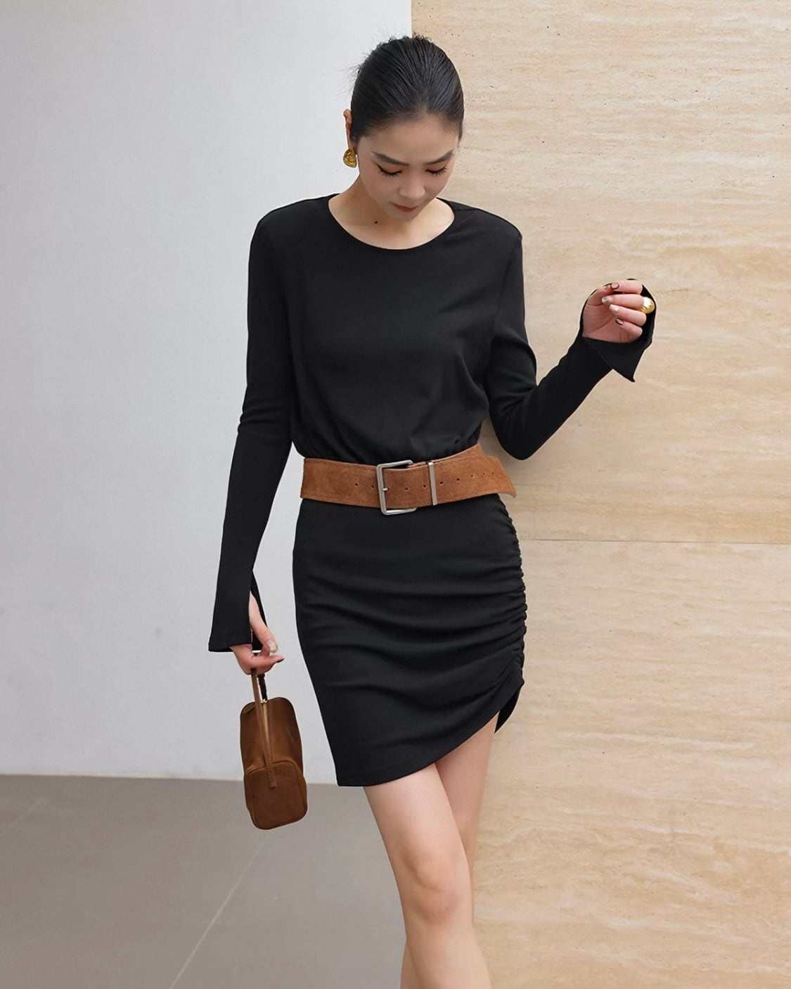 サイドギャザー タイトミニワンピース