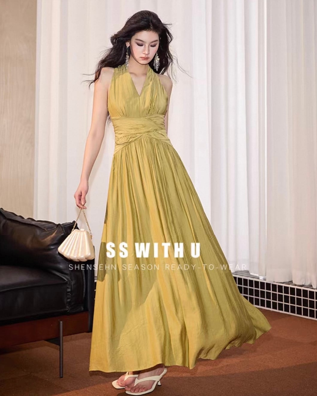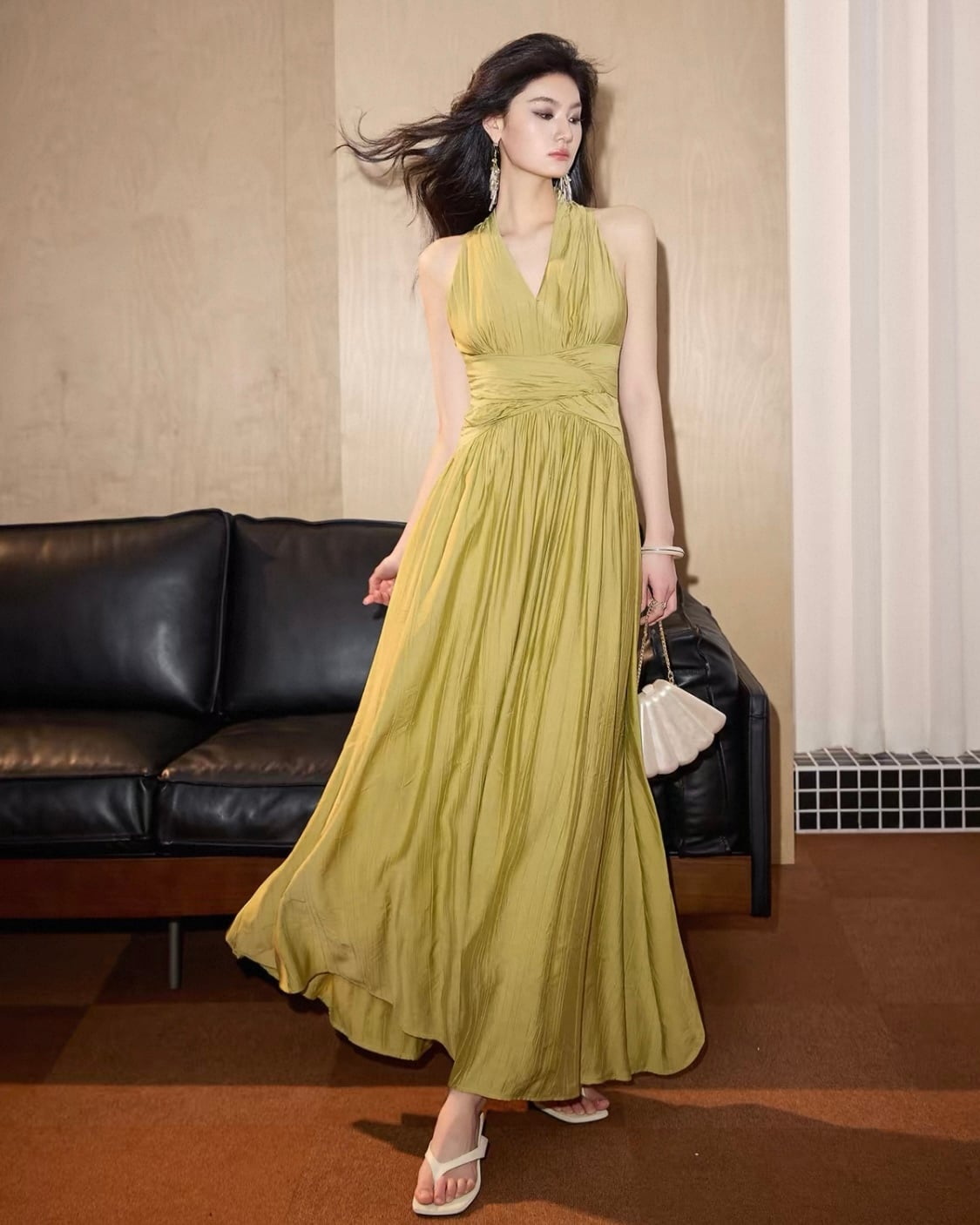 ホルターネックデザインで、首元のラインを美しく見せ、