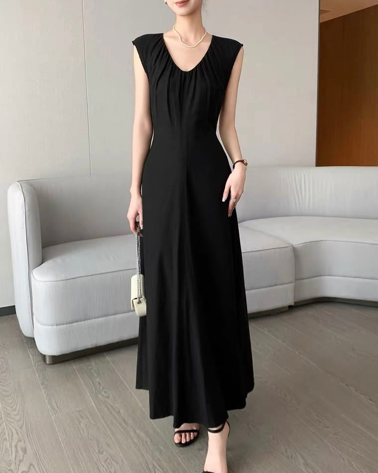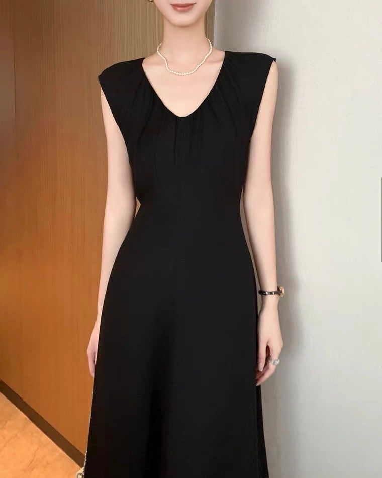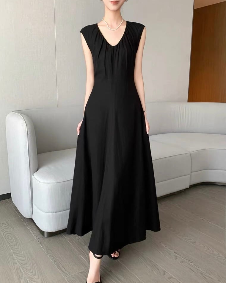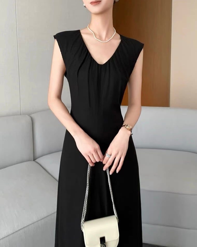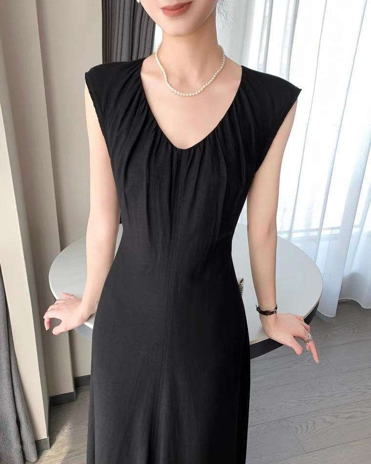 胸元にさりげなく入ったギャザーがポイントのワンピース。