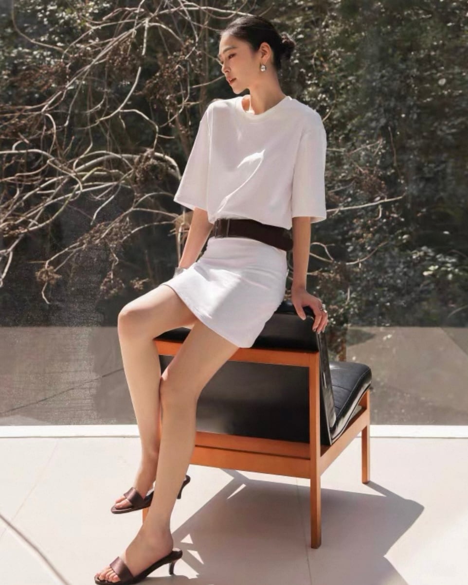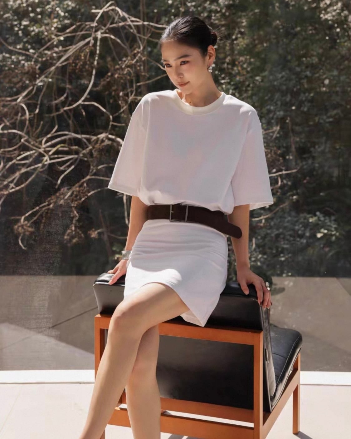 ベルトなしでもラフになりすぎず、さらっと着るだけでまとまりやすいのがポイント。