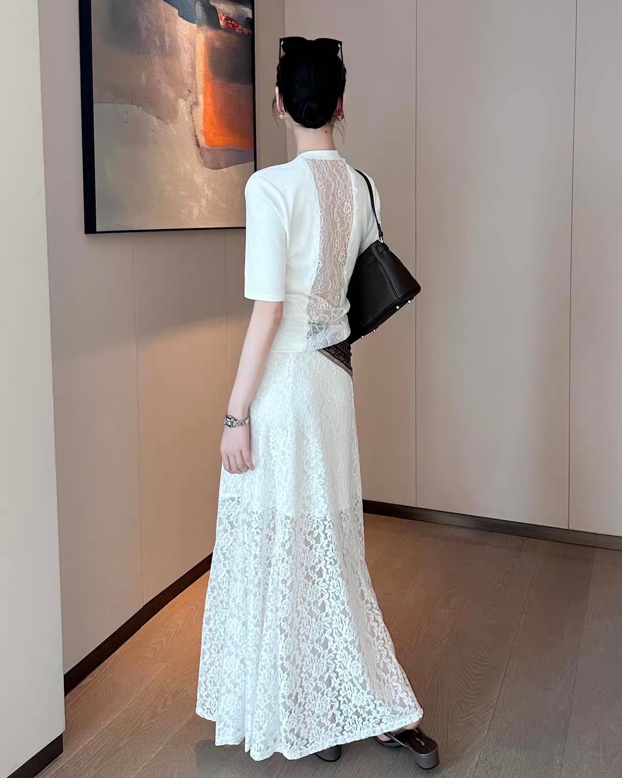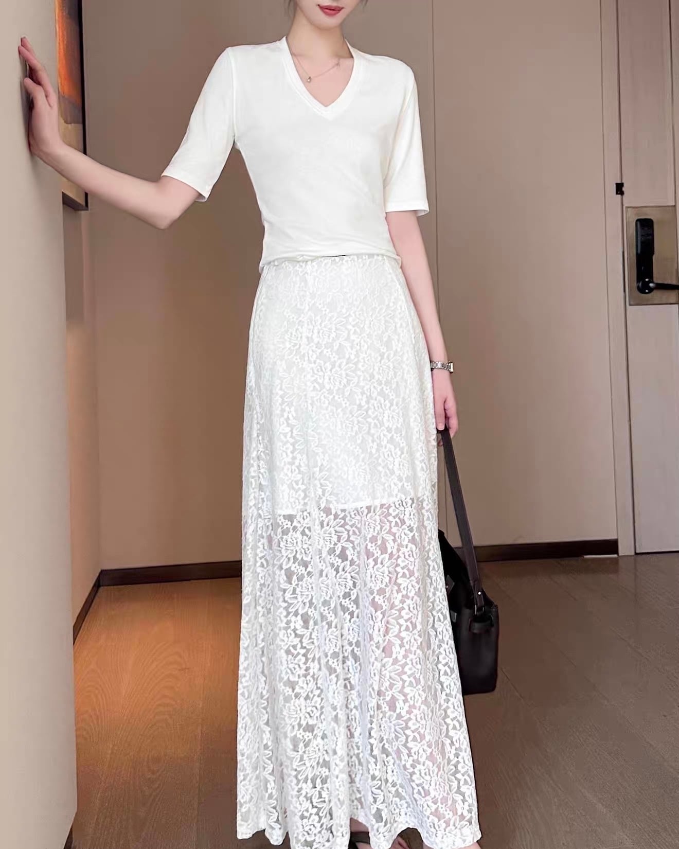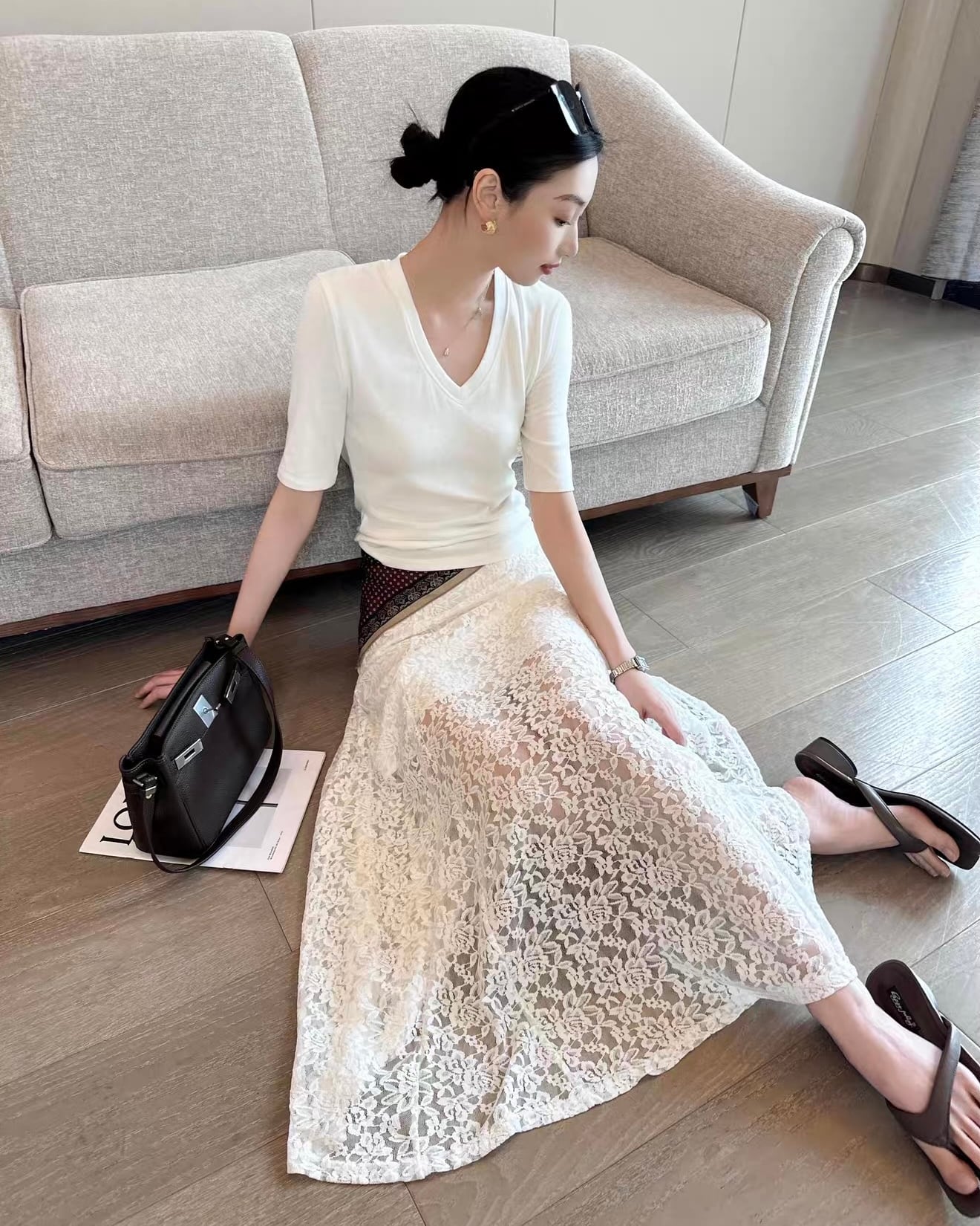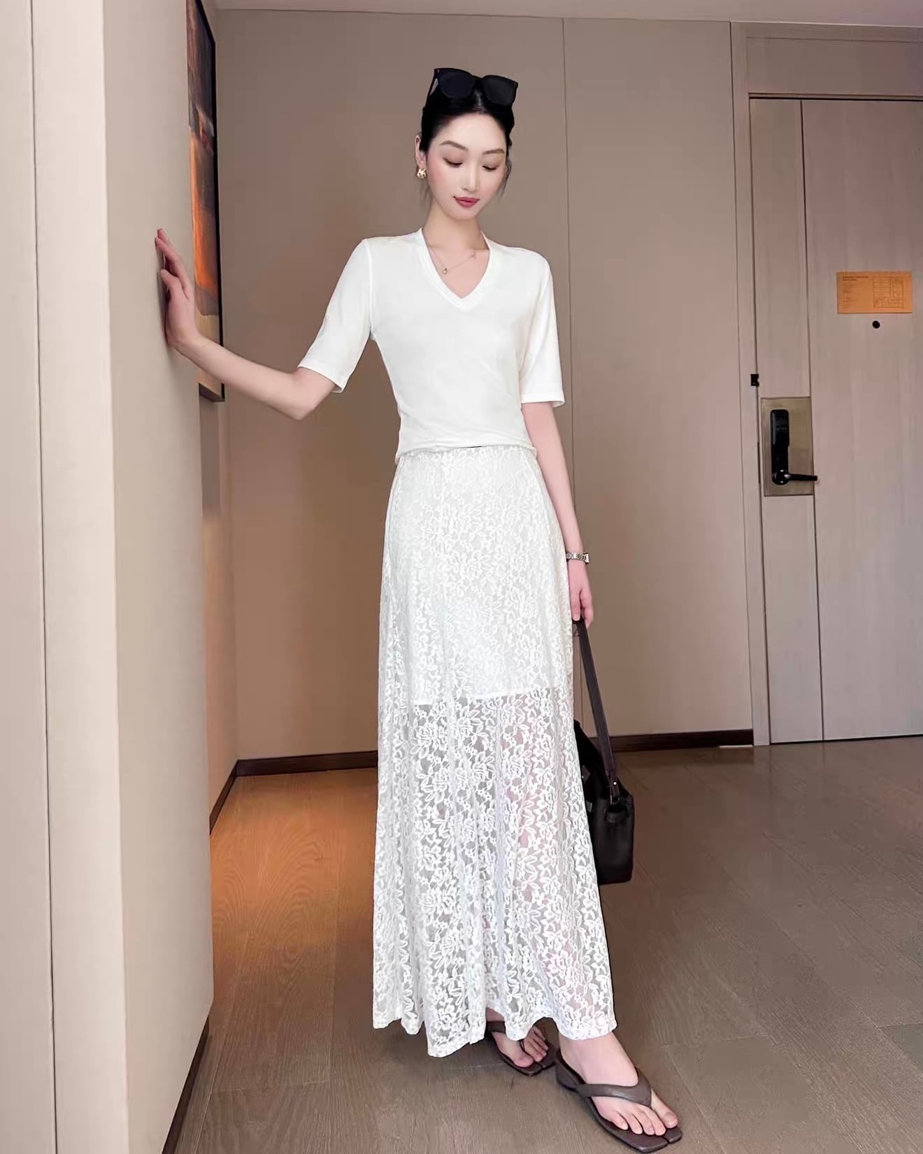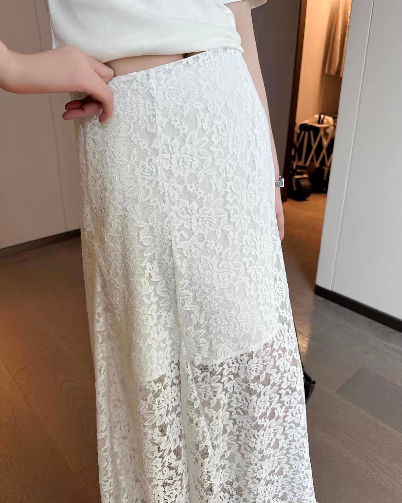 ひざ下から自然に透けるデザインで、軽さと抜け感が出る一枚です。