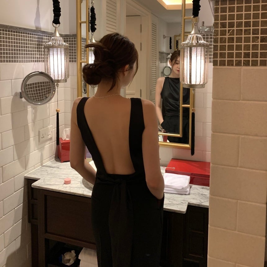 背中が大胆に空いたセクシーさと、フロントのシンプルなデザインが素敵です。