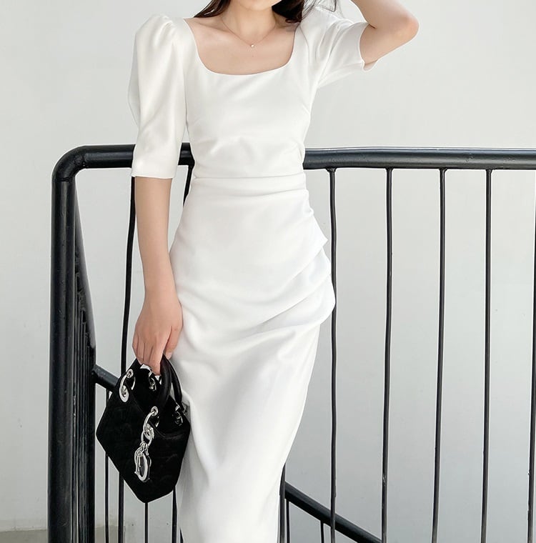 シンプルなデザインでありながらも、パフスリーブが華やかさをプラスしてくれるアイテムです。