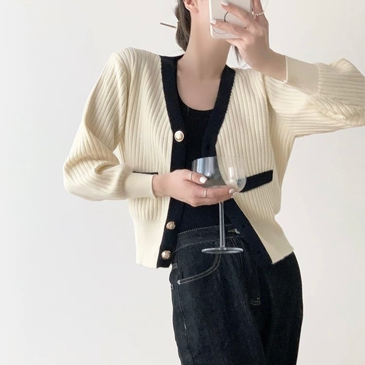軽やかなブロード編みが印象的なバイカラーニットカーディガン。