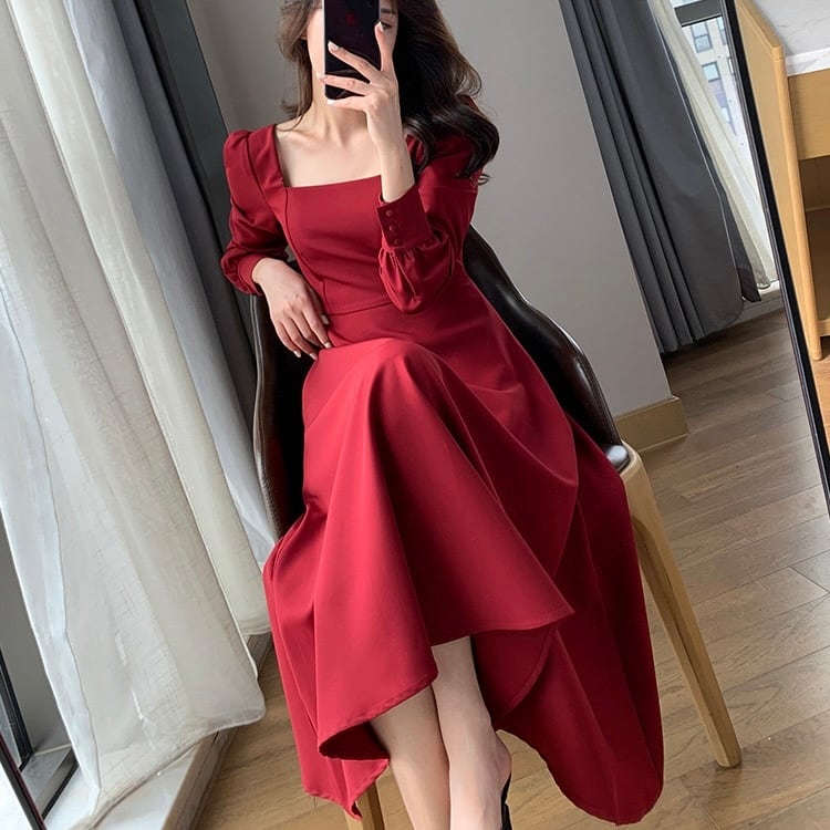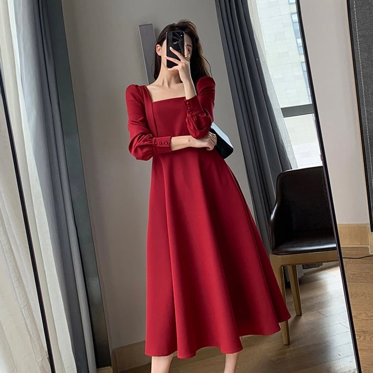 スクエアネック Aラインワンピース