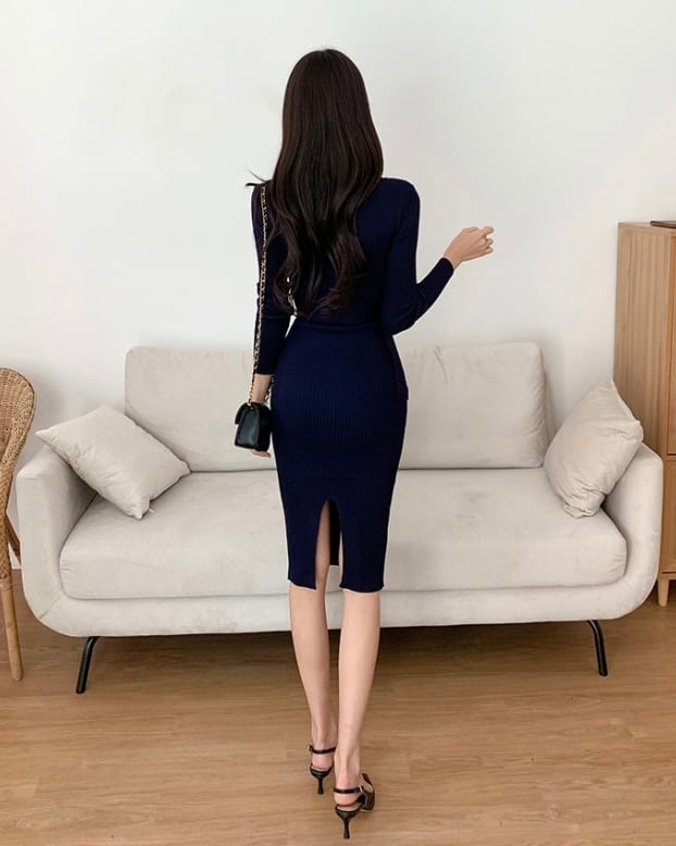 ヘンリーネックのリブニットワンピースは、シンプルな中にもこだわりが詰まったアイテムです。