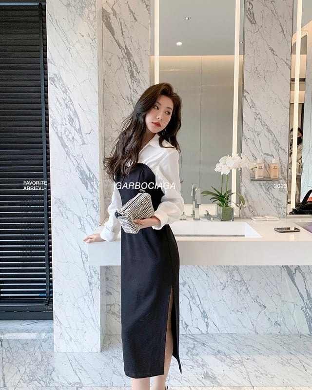 上品なオープンカラーシャツと女性らしいスリットスカートが絶妙にマッチしたデザインは、どんなシーンでも活躍してくれること間違いなし◎