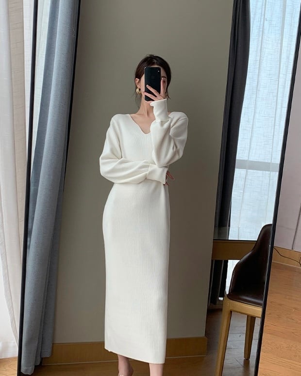 ゆったりとしたシルエットが女性らしさを引き立てるニットワンピース。