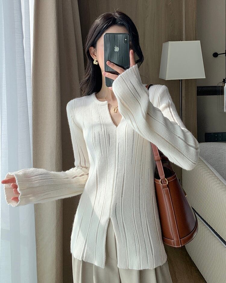 Vカット デザインニット