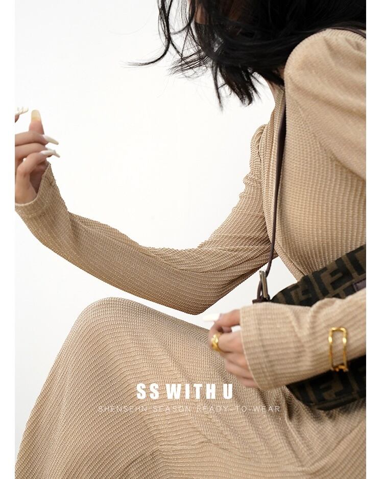 エレガントな印象を与えるカシュクール スリットワンピース。