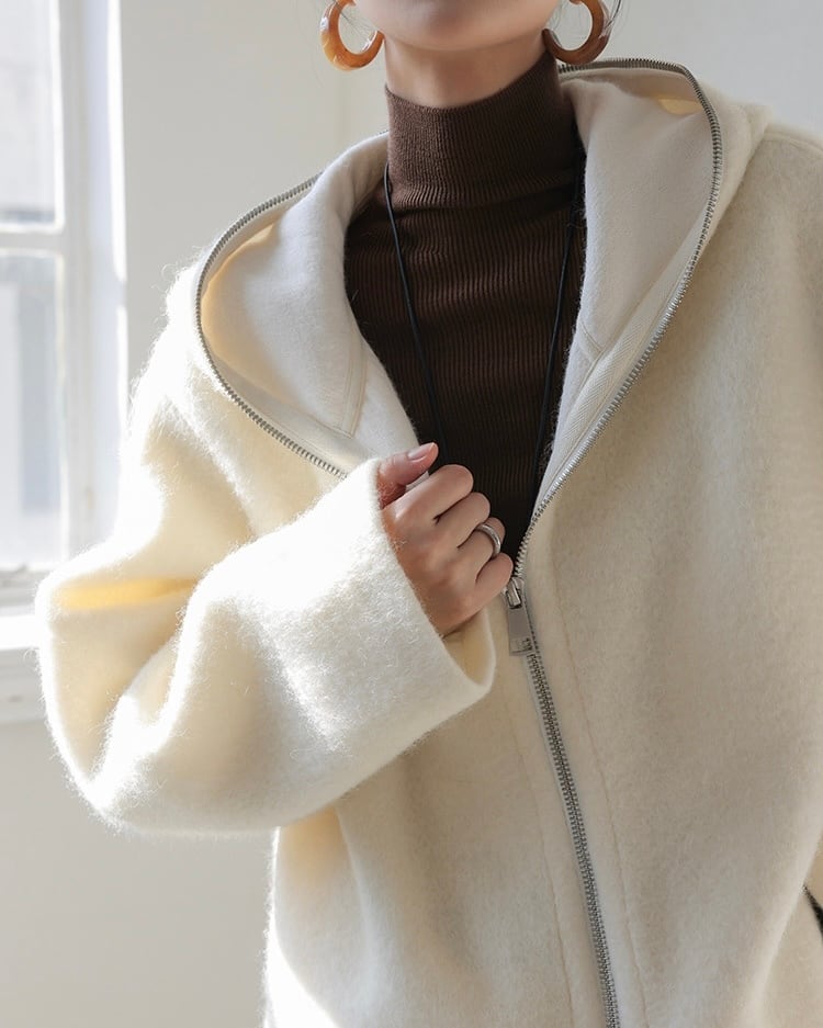 全2色/ダブルジッパー ウールパーカー