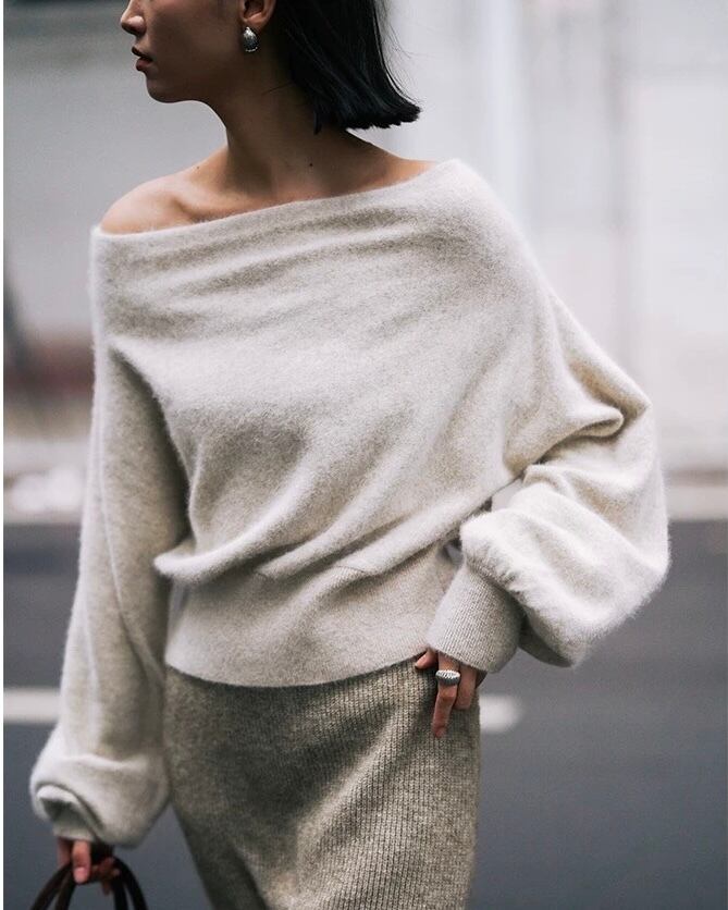 ラビットファー オフショルダーセーター