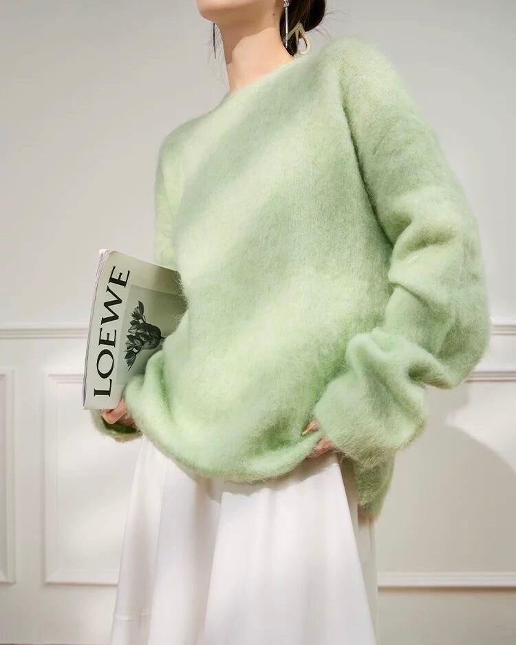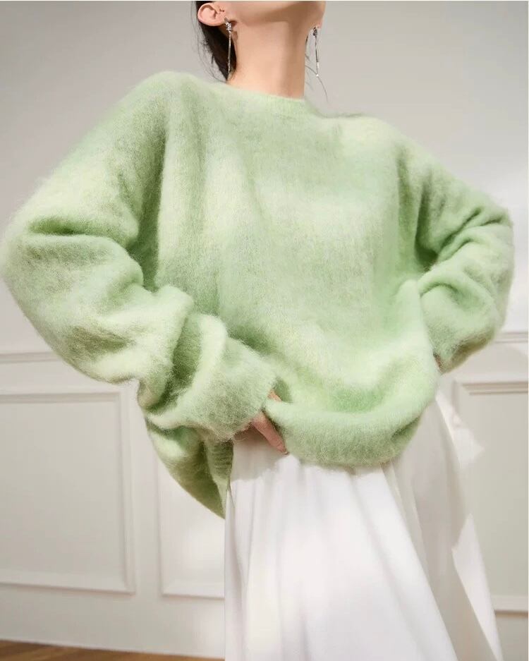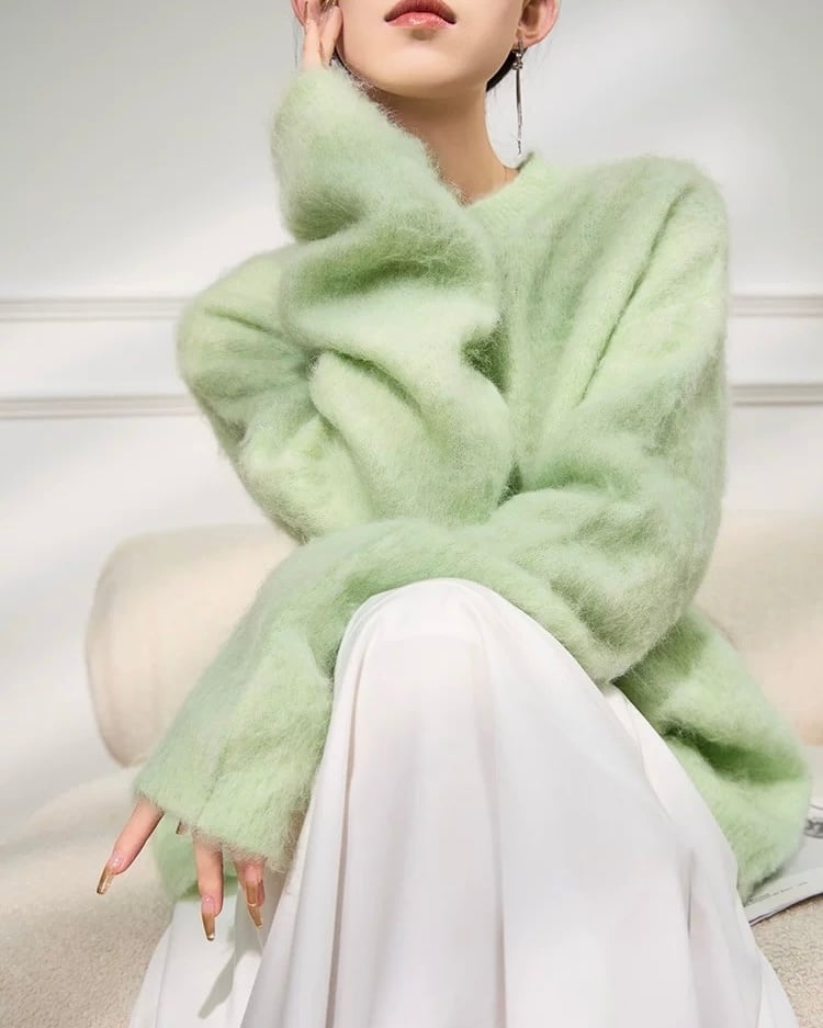 優しい色合いのミントグリーンとモヘア素材が女性らしい一枚です。