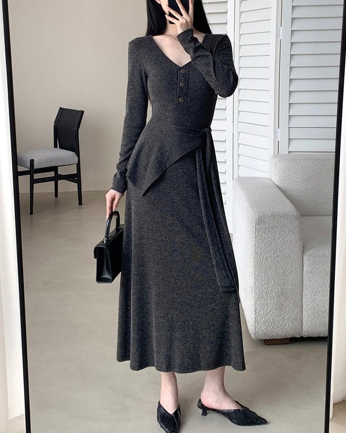 一枚でお洒落にみえるデザイン性のあるワンピースです。