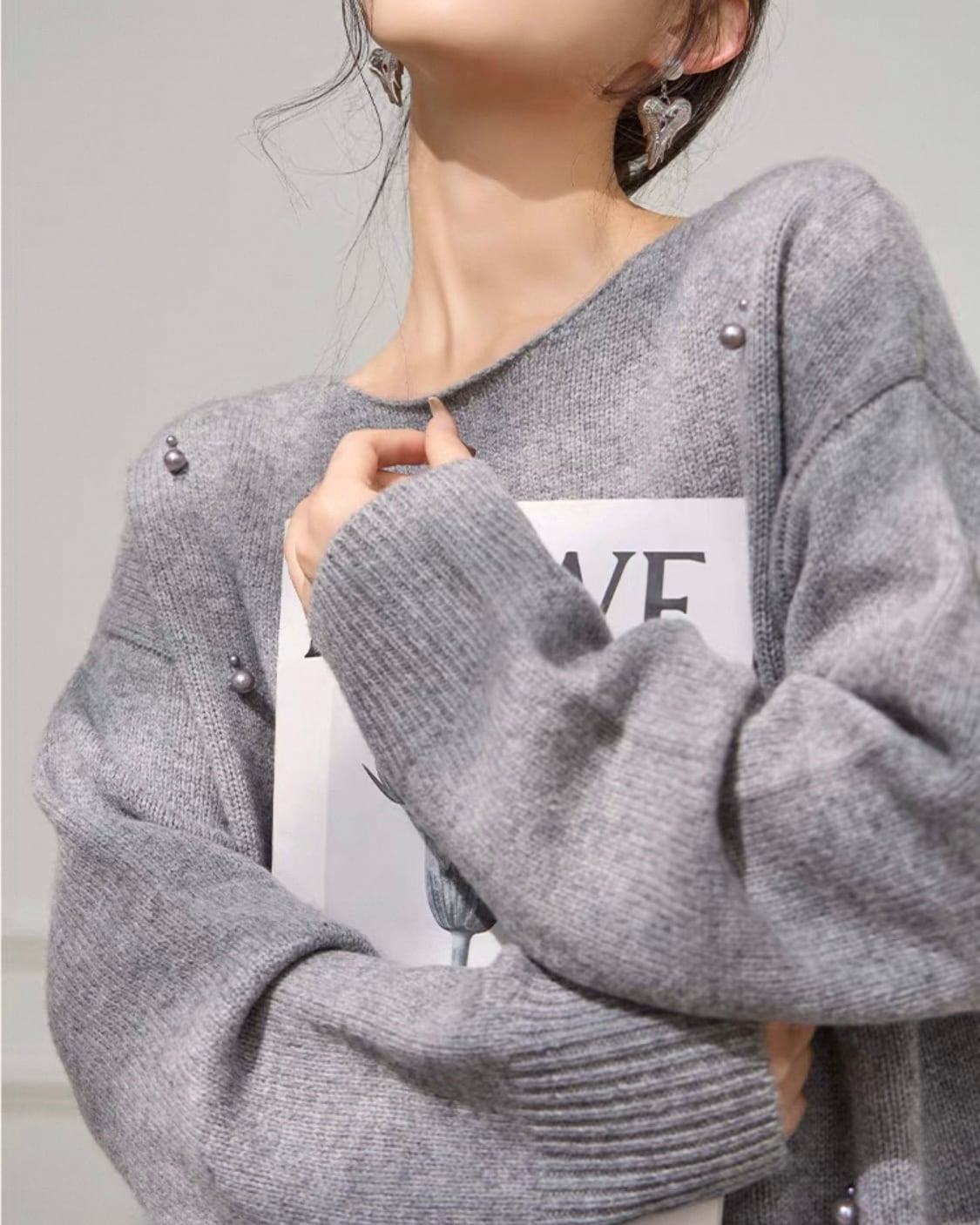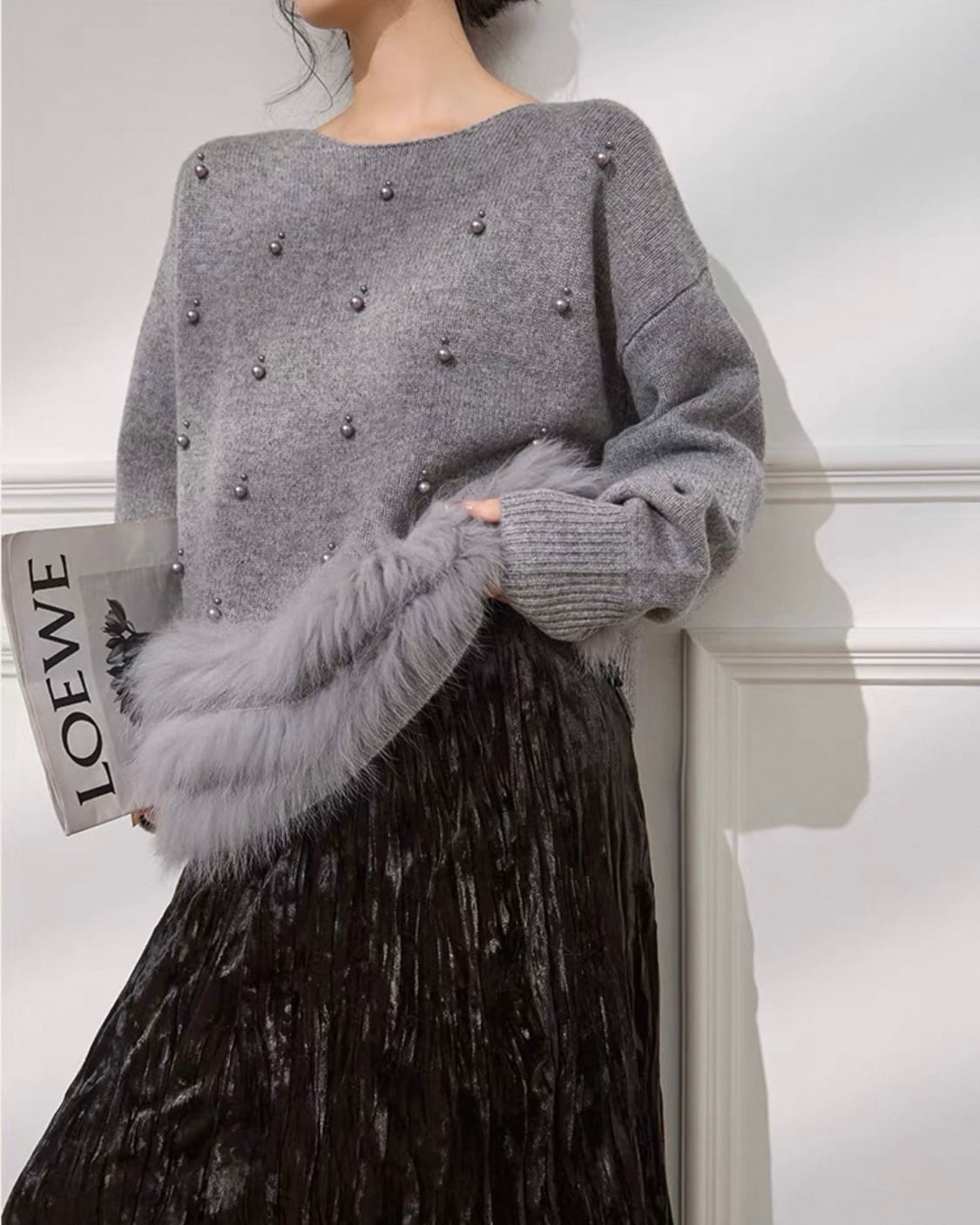 ラウンドネック パール ファー ニット